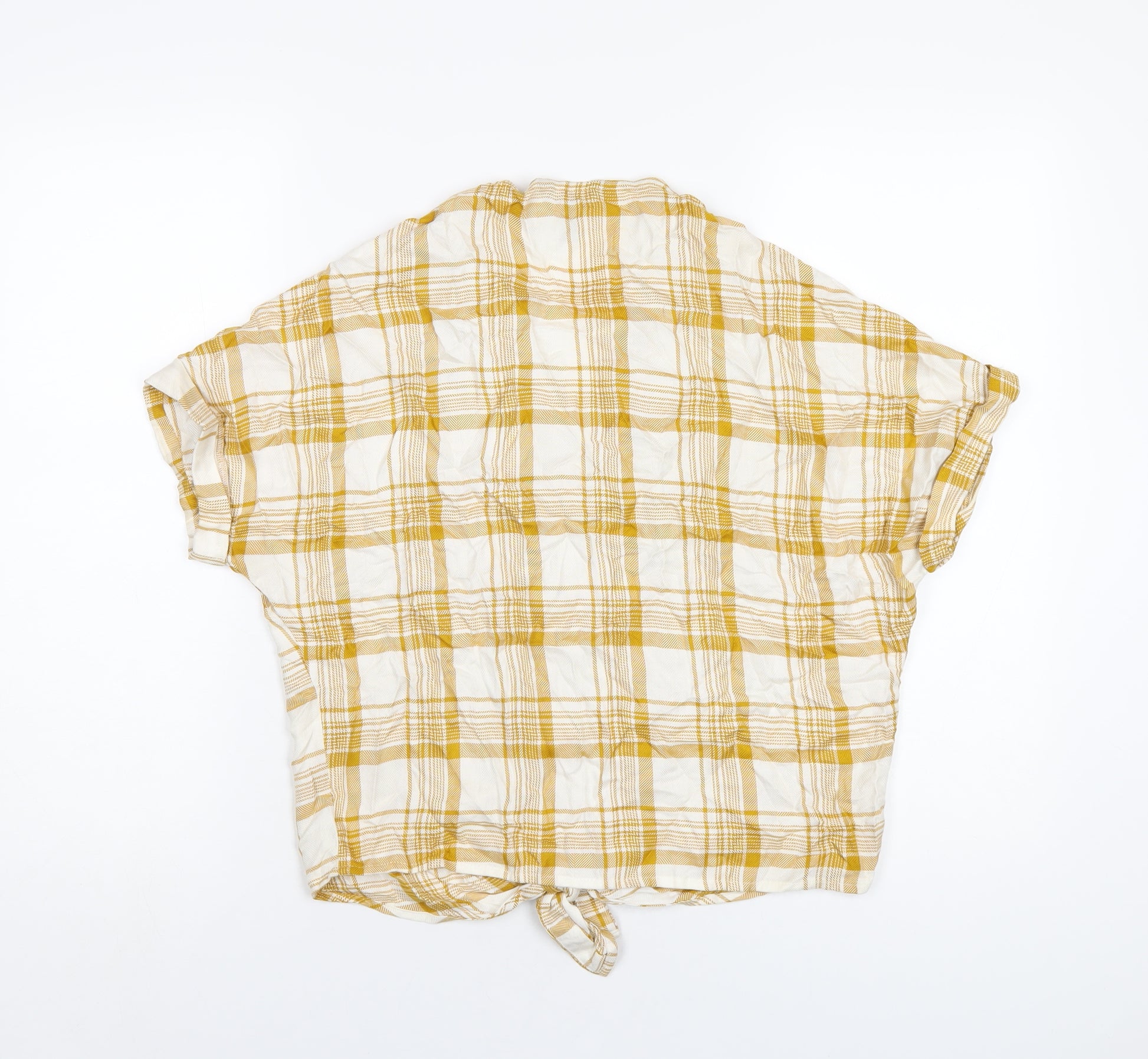 Womens Yellow Plaid Viscose Basic T-Shirt Size 6 V-Neck