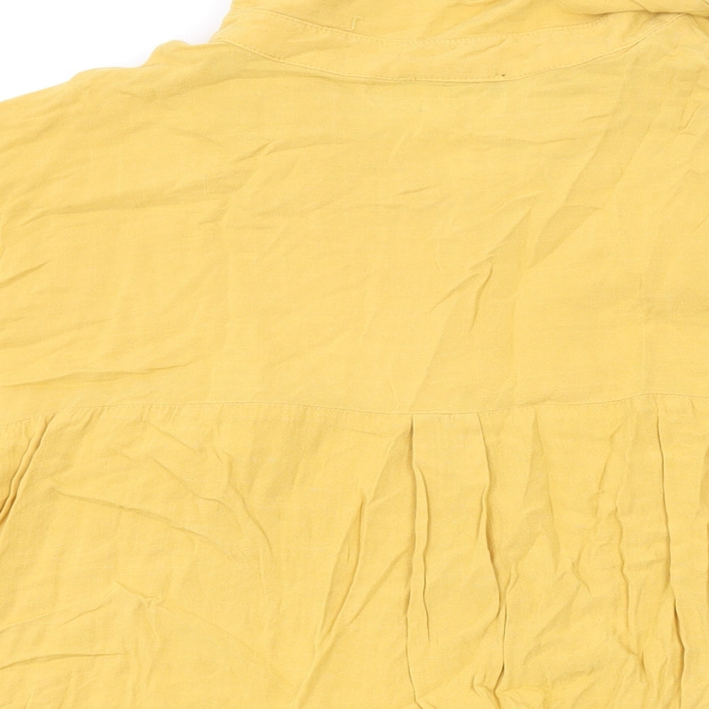 Womens Yellow Viscose Basic Button-Up Size 26 V-Neck