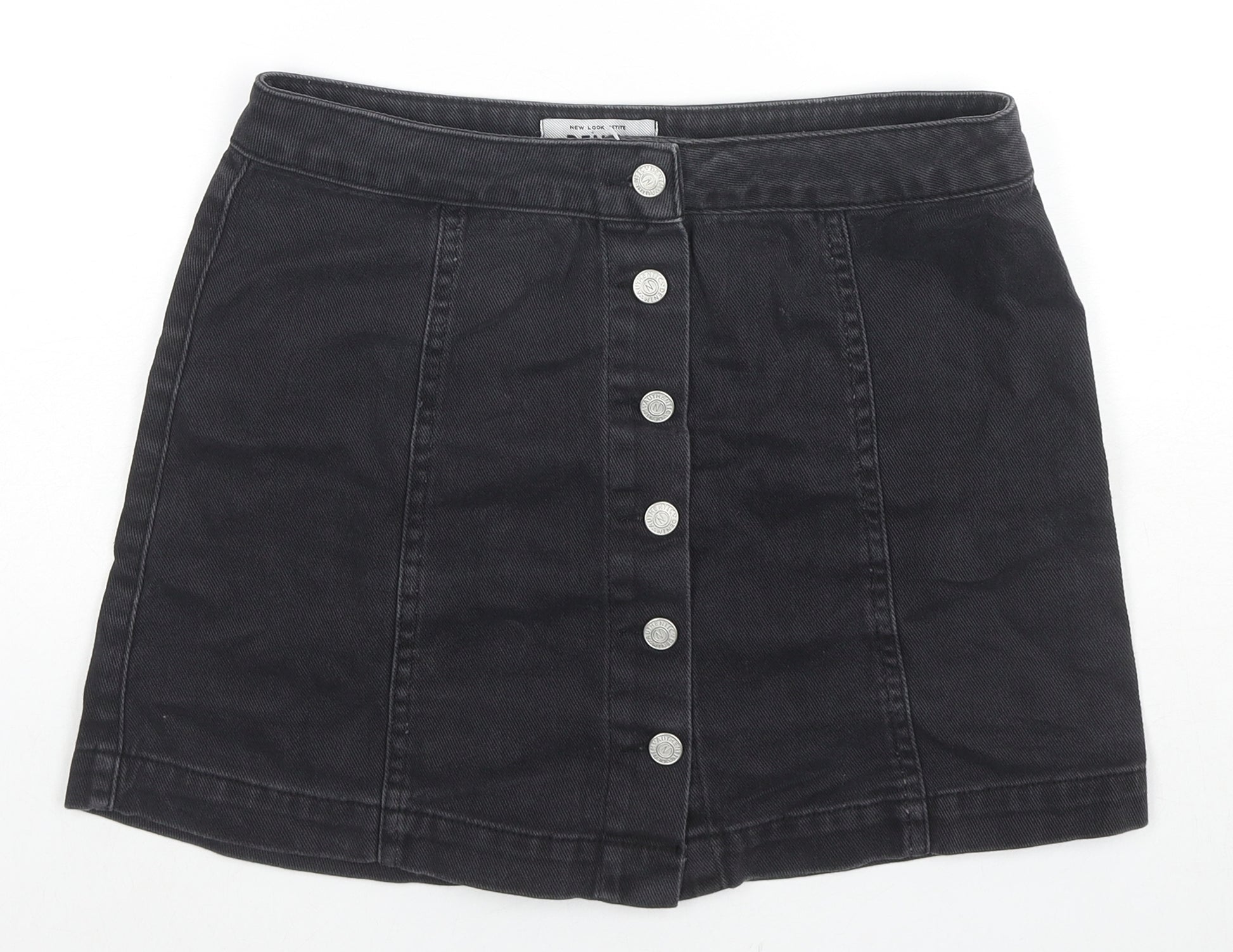 Womens Black Cotton A-Line Skirt Size 12 Button