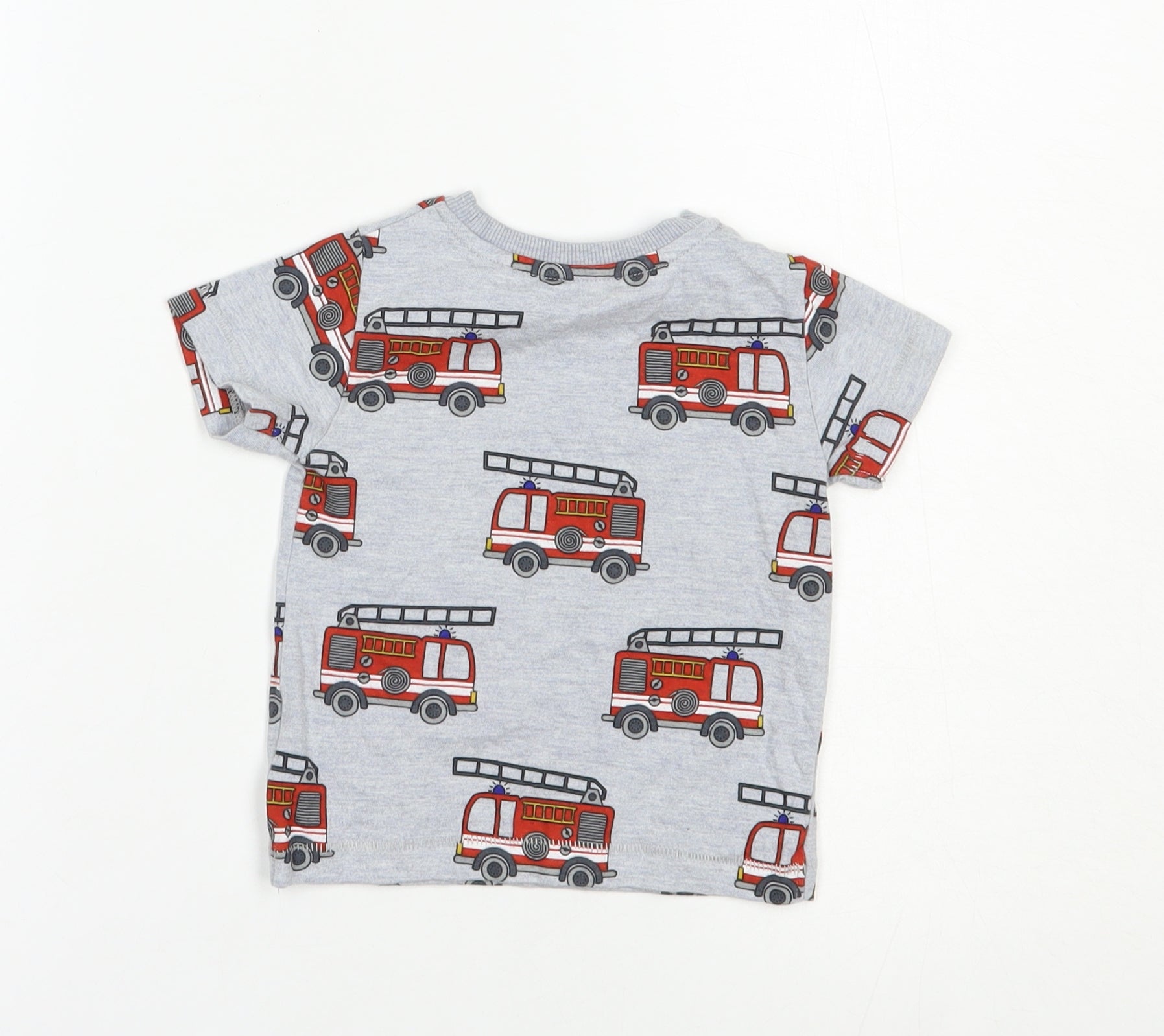 Baby Grey Geometric Cotton Pullover T-Shirt Size 3-6 Months Crew Neck Pullover - Fire Engine