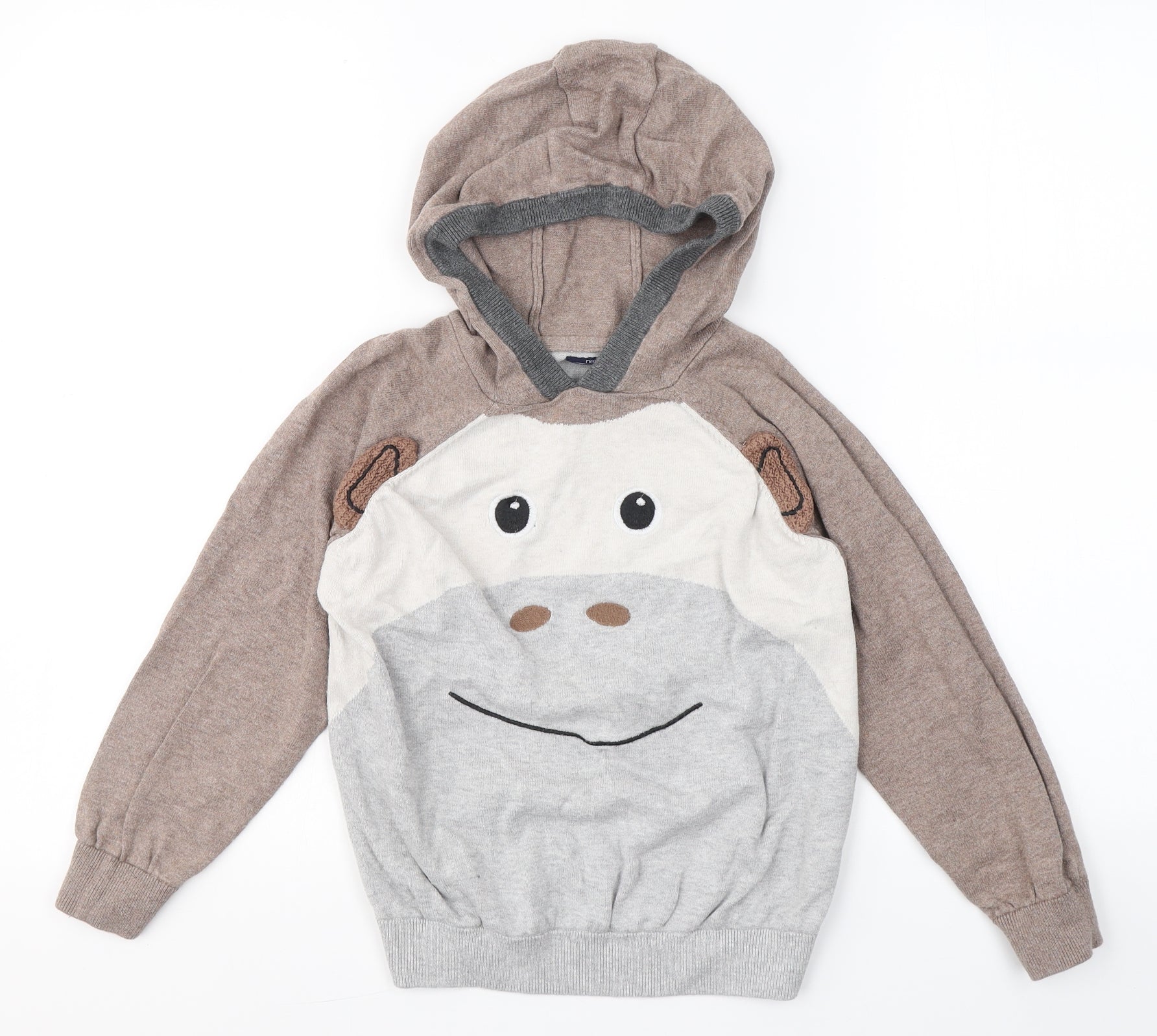 Boys Beige Round Neck Cotton Pullover Jumper Size 6-7 Years - Monkey