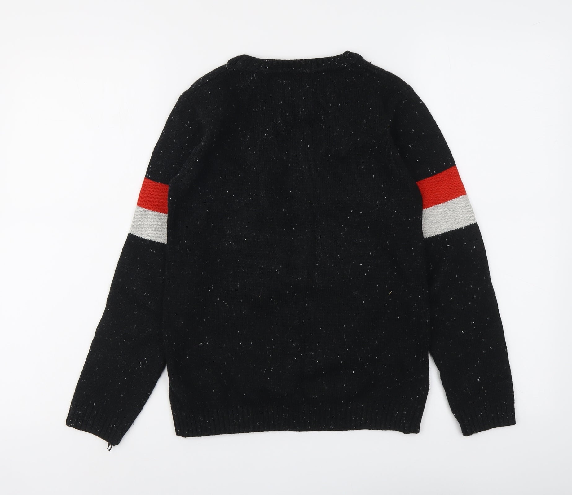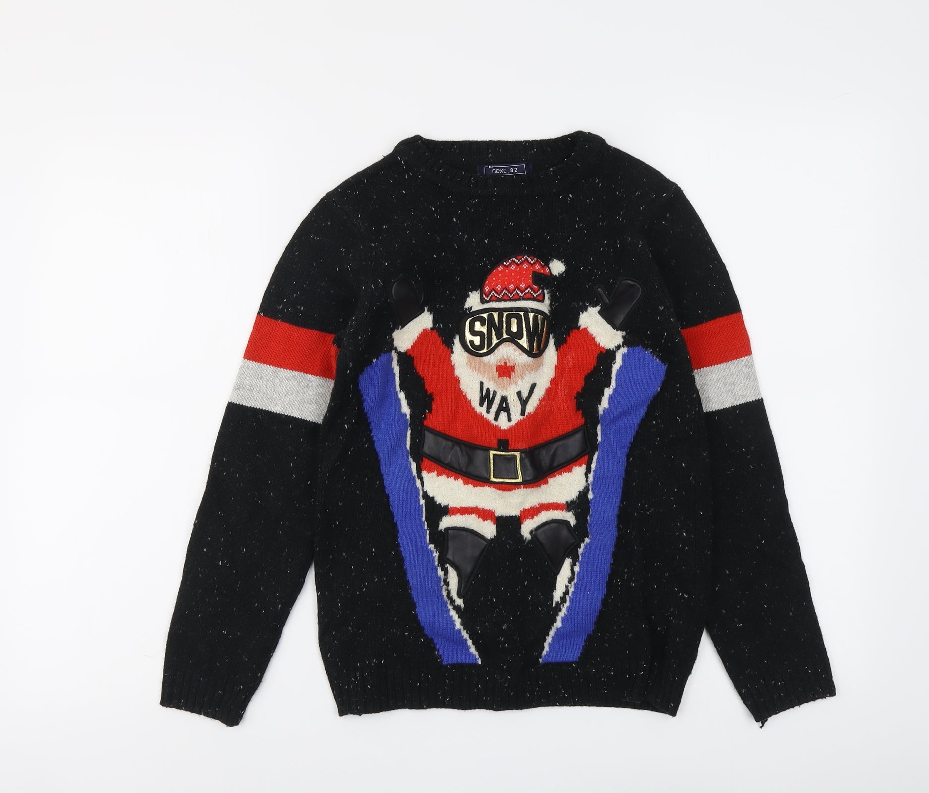 Boys Black Crew Neck Acrylic Pullover Jumper Size 10 Years Pullover - Christmas Santa