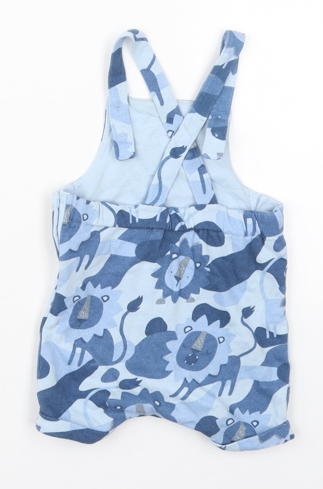 Boys Blue Cotton Dungaree One-Piece Size 6-9 Months Button - Lions