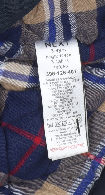 Next Boys Blue Faux Fur Lined Hooded Parka Coat 3-4 Years