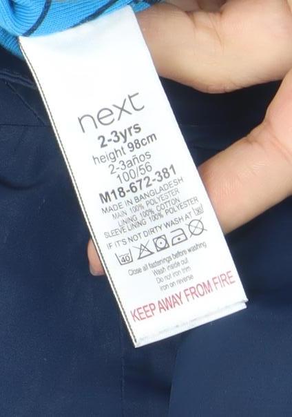 Next Boys Blue Hooded Windbreaker Jacket 2-3 Years Polyester Lined