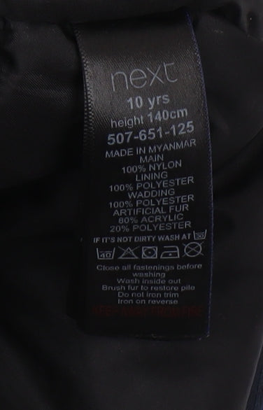 Next Boys Blue Parka Jacket 10 Years with Fur Trim