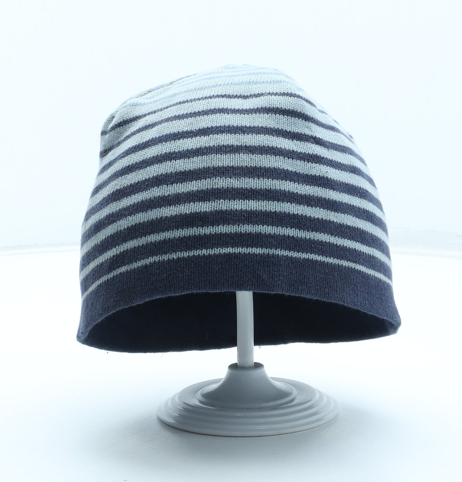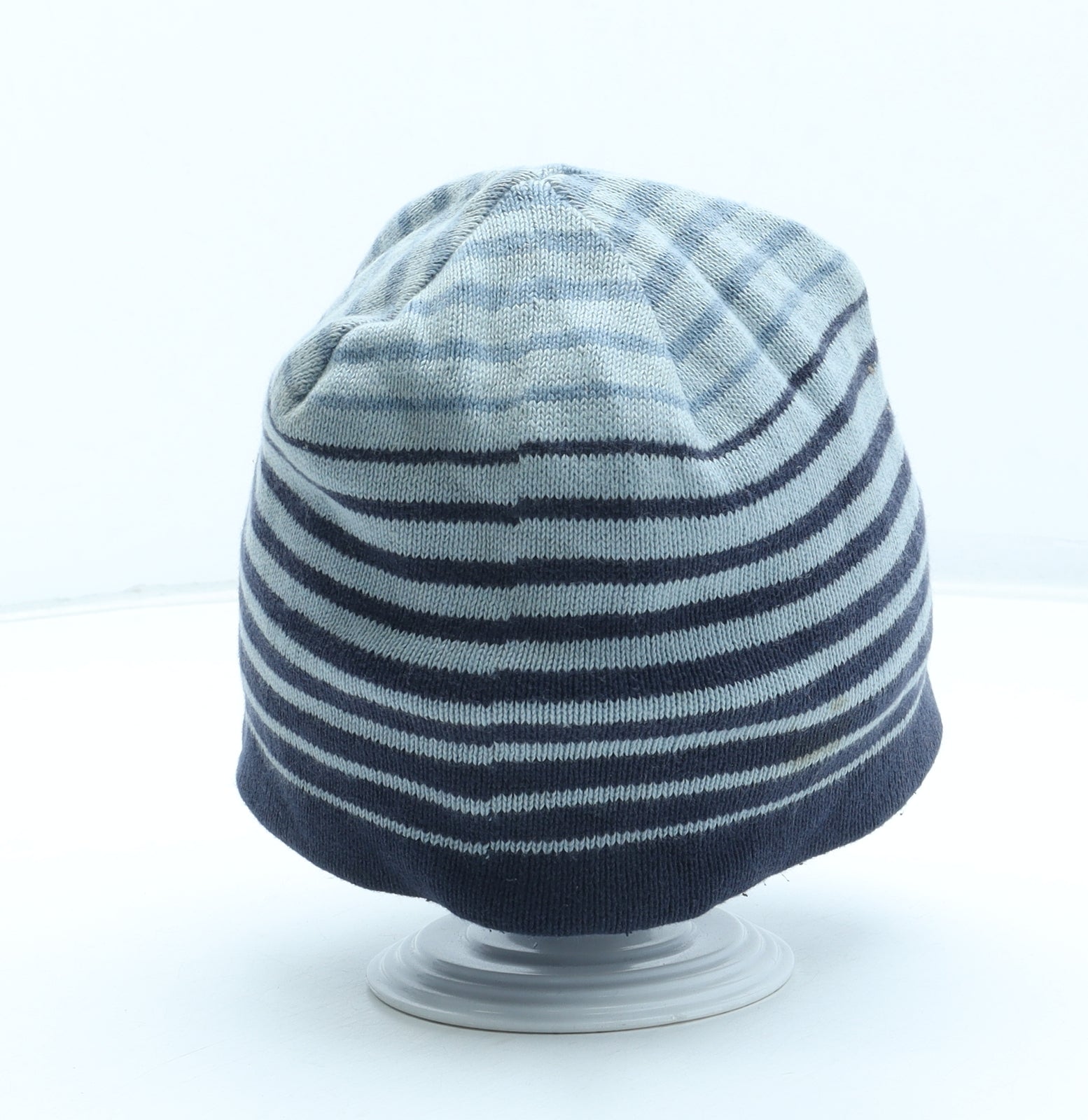 Boys Blue Striped Acrylic Beanie Size S - Size 7-10 Years