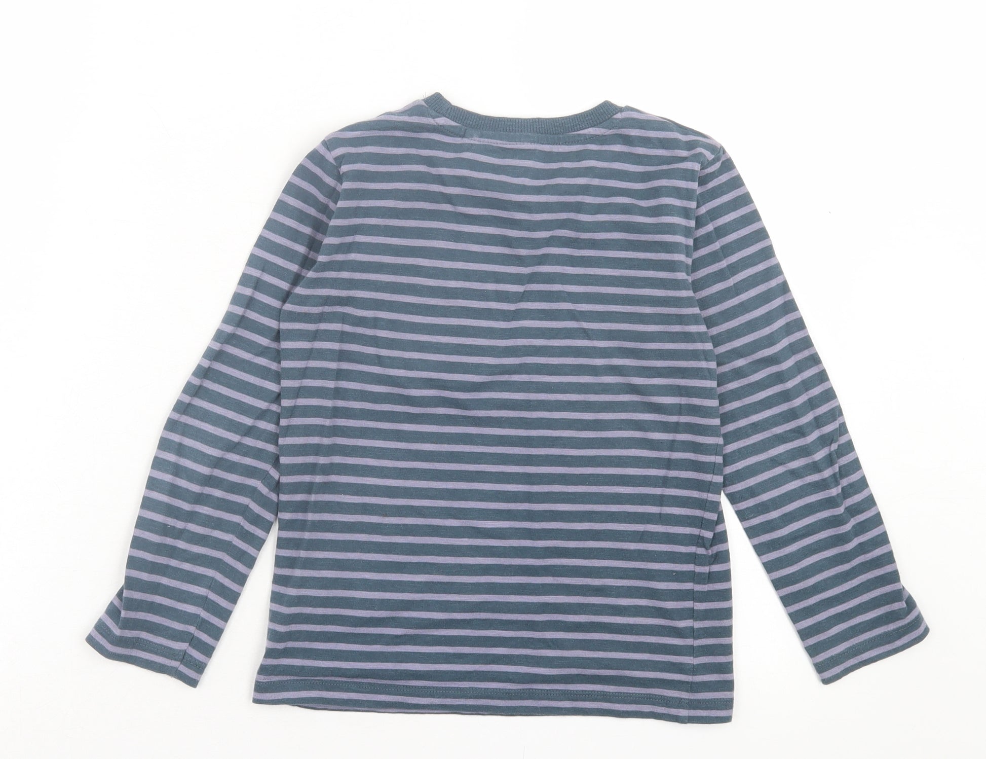 Boys Blue Striped Cotton Basic Casual Size 5-6 Years Crew Neck Pullover - Fox Pocket