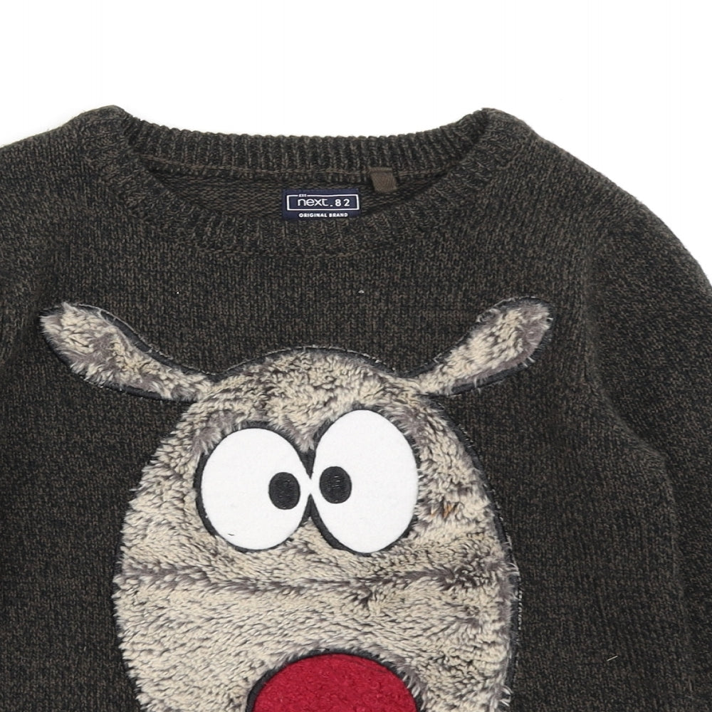 Next Boys Brown Cotton Crew Neck Jumper 7 Years Casual Knitwear