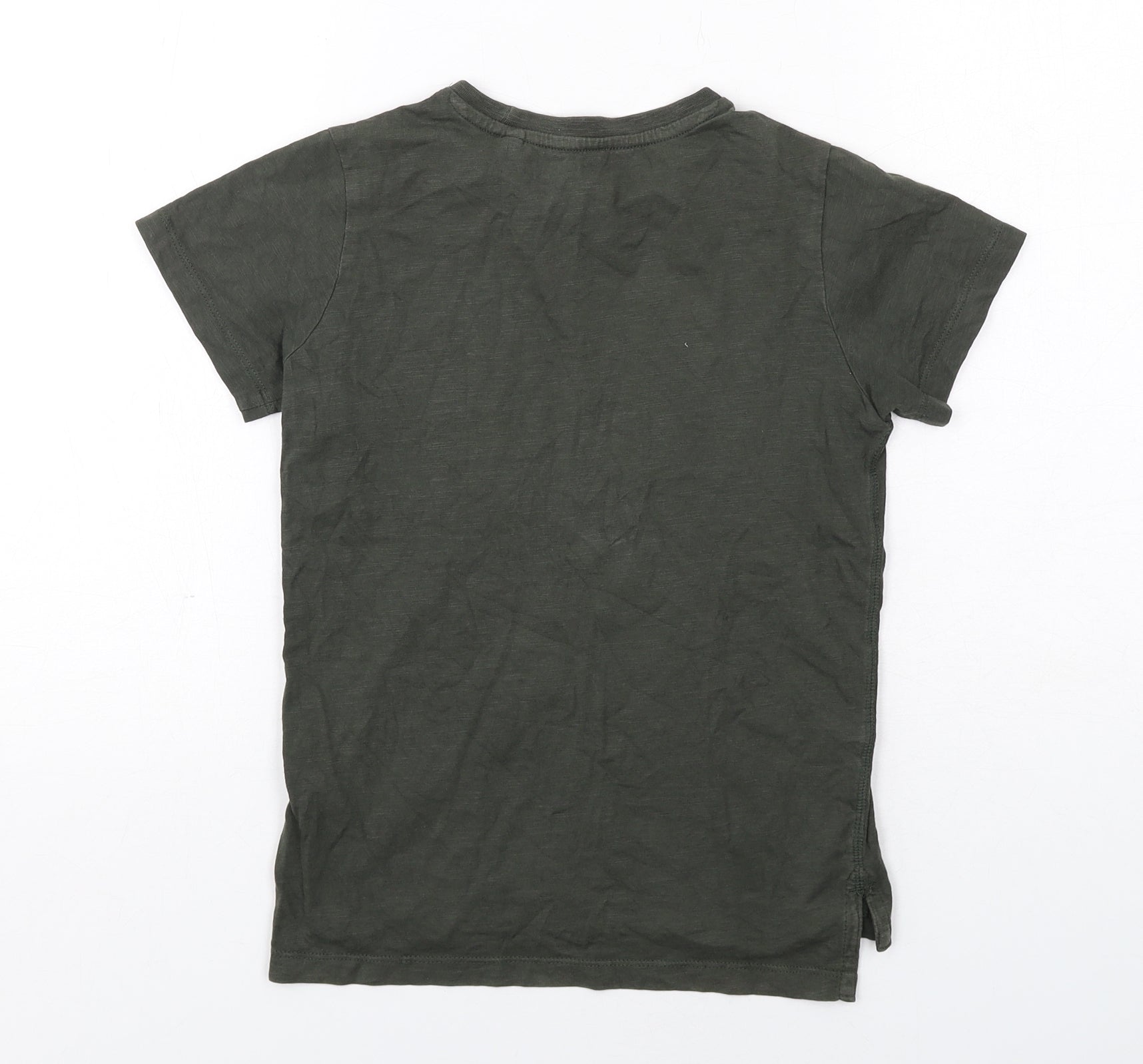 Boys Green Cotton Basic T-Shirt Size 7 Years Round Neck Pullover