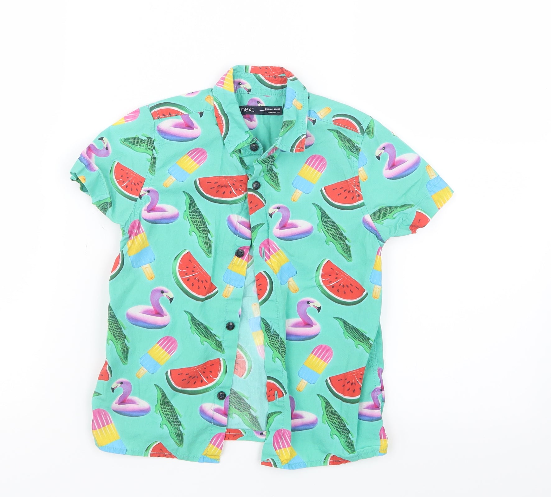 Boys Green Geometric Basic Button-Up Size 4 Years