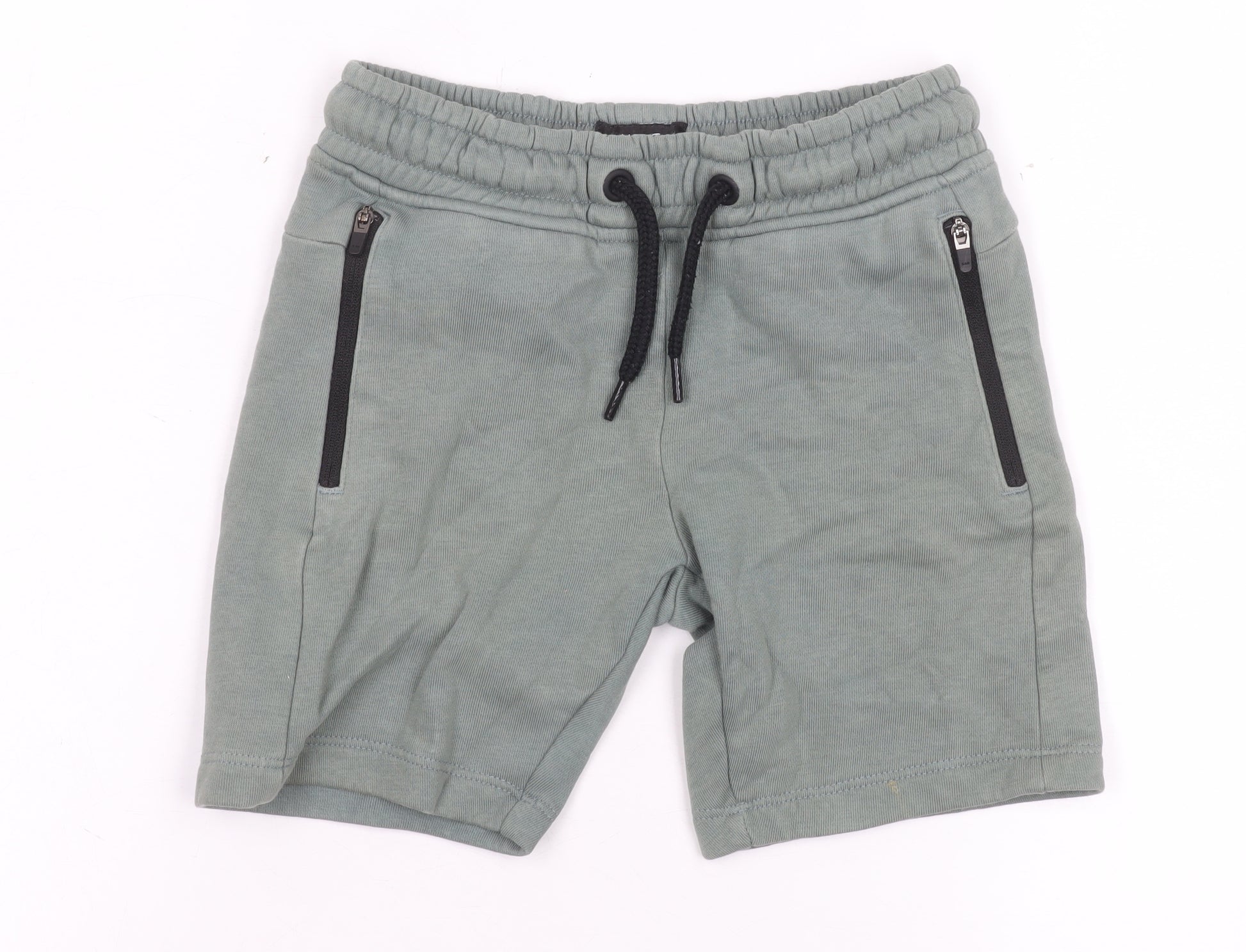 Keep your little one cool and comfortable with these stylish green sweat shorts from Next. Crafted with care from a soft cotton blend, these shorts offer both ease of movement and durability for active days. Made from 80% cotton and 20% polyester, they provide a breathable yet cosy feel that’s ideal for everyday wear, whether at school, on the playground, or relaxing indoors. Designed for boys aged 4 years, they feature an elasticated waistband with an adjustable drawstring for the perfect fit, as well as practical zip pockets to safely store small items. The simple flat-front design gives them a neat and versatile look that pairs effortlessly with t-shirts, polo tops, or hoodies. The mid-rise waist and regular fit ensure lasting comfort throughout playtime, while the medium green hue adds a fresh, contemporary touch to any casual outfit. These Next shorts are machine washable, making them easy to care for and perfect for regular use. They are light and soft, ideal for the warmer months of spring and summer. While previously worn, they remain in excellent condition with only minimal visible signs of gentle use. For a favourite in any young boy’s wardrobe, these Next sweat shorts blend practicality and laidback style perfectly, making them a great value choice for parents seeking durability and everyday comfort.