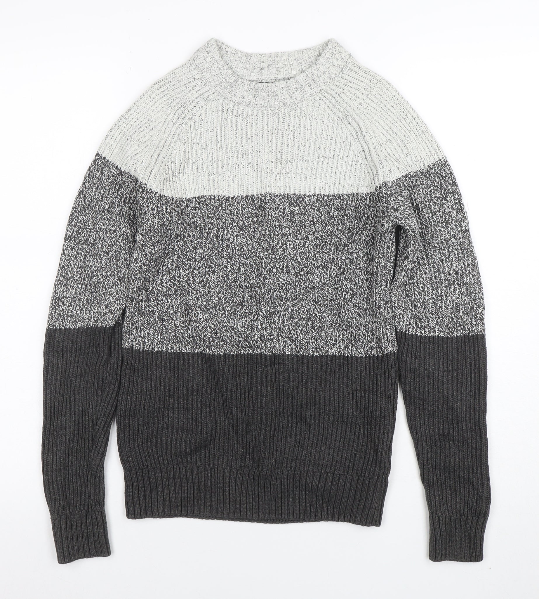 Boys Grey Colourblock Knit Jumper 13 Years Crew Neck Pullover