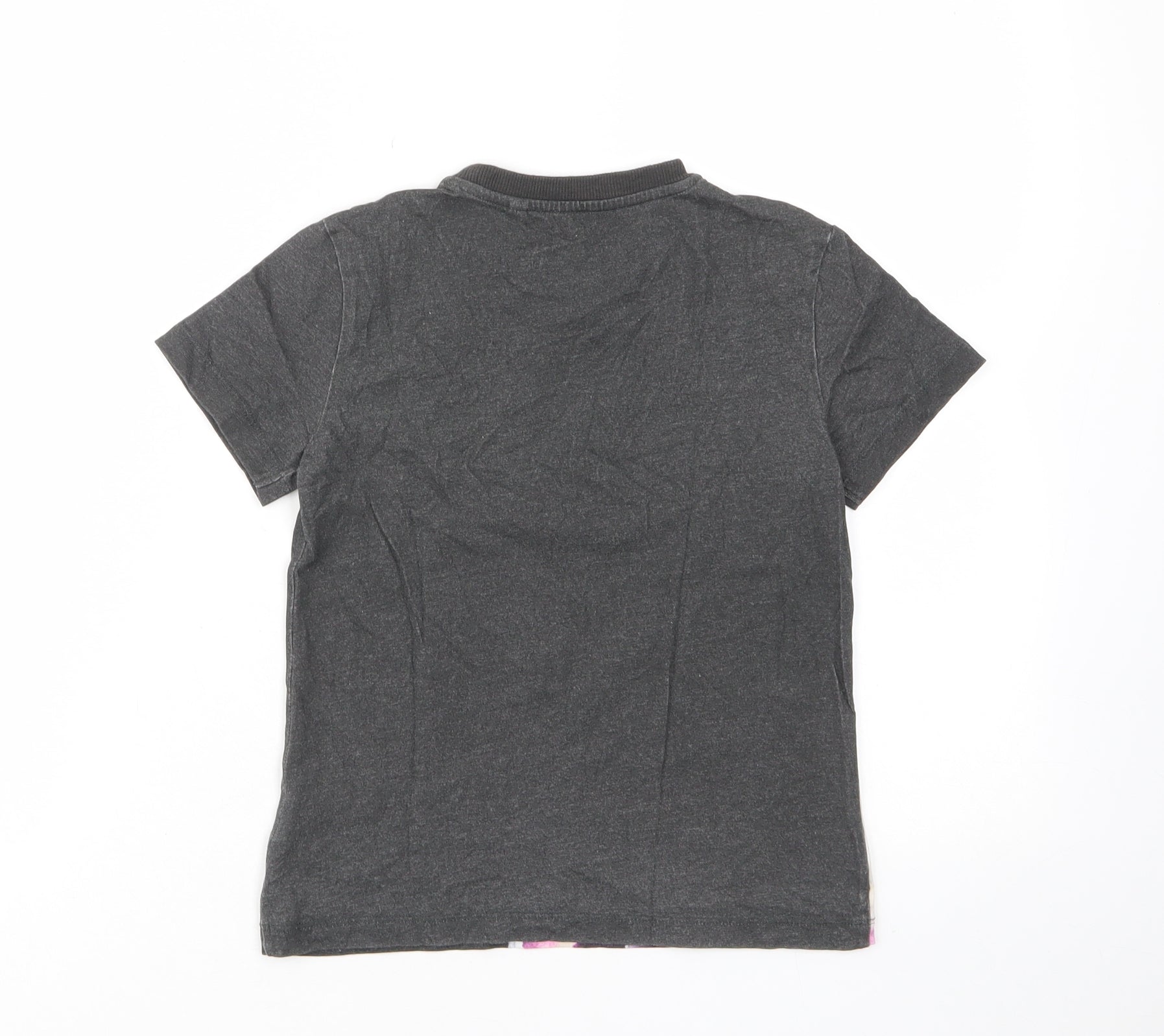 Boys Grey Cotton Basic T-Shirt Size 6 Years Crew Neck Pullover - Spaceship, Embroided