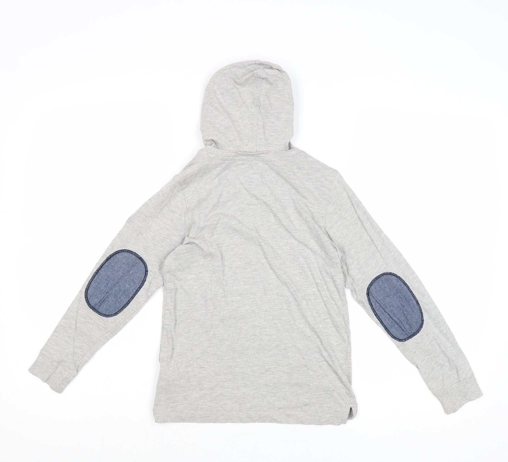 Boys Grey Cotton Pullover Hoodie Size 7 Years Pullover - Elbow Patches