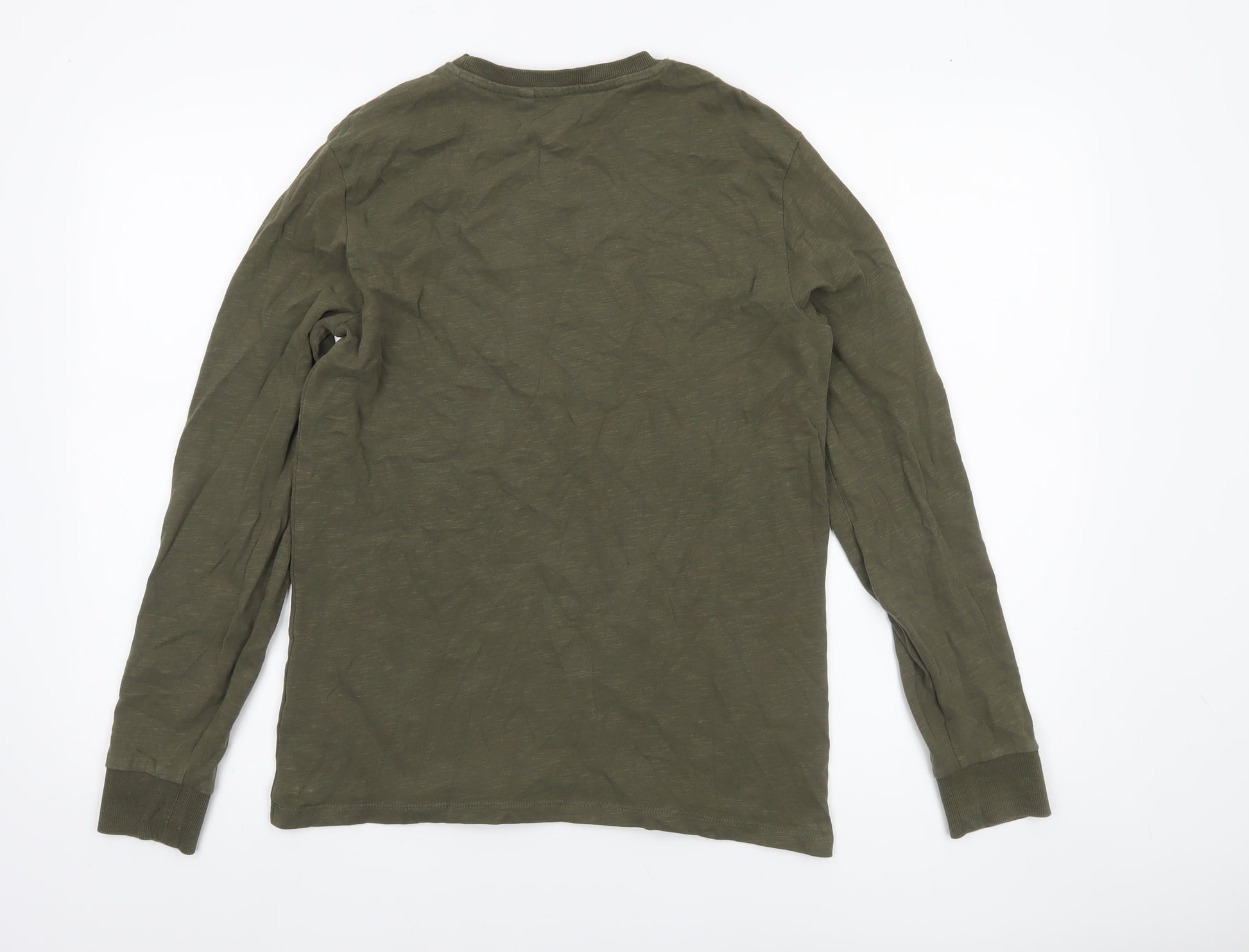 Next Boys Khaki Long Sleeve Crew Neck Cotton T-Shirt 14 Years