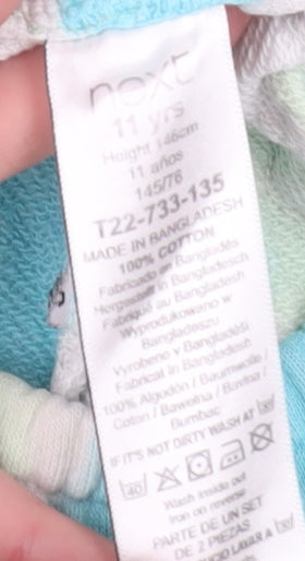 Upgrade your young one's wardrobe with these vibrant multicoloured athletic shorts from Next. Designed for boys aged 11 years, they boast a lively tie-dye pattern in cool blue and green hues. Crafted from 100% cotton, these shorts promise a soft, comfortable wear, perfect for active days. The elastic waist with a drawstring ensures a snug fit, while pockets provide practicality. These shorts are ideal for casual and sports activities, offering both style and function. Keep them fresh and clean with easy machine wash care. Perfect for summer adventures, these shorts are a versatile addition to any boy's collection.