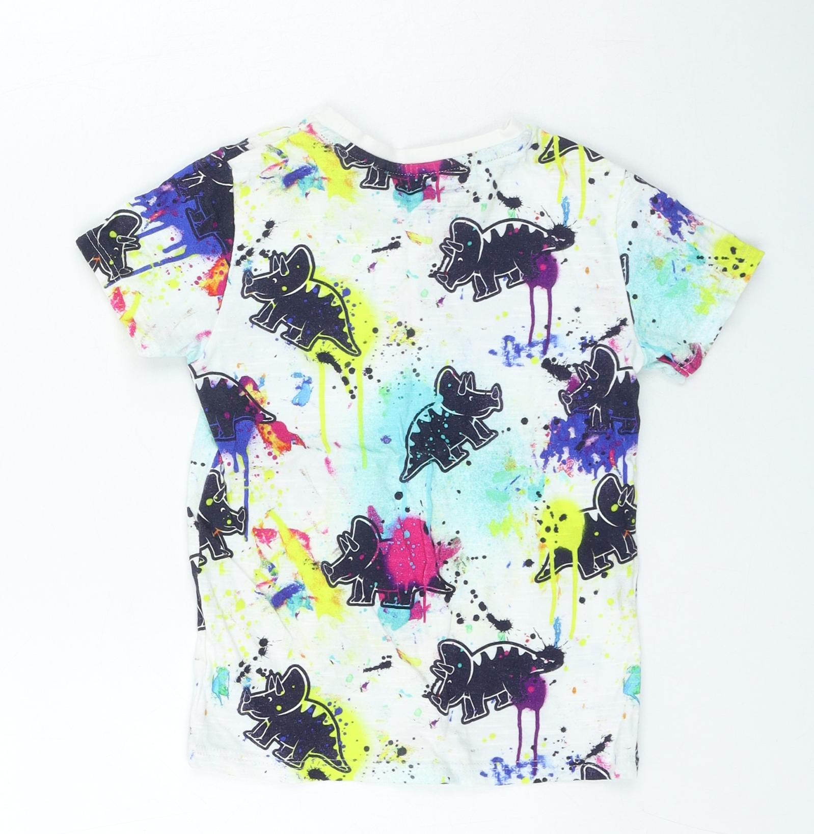 Boys Multicoloured Geometric Cotton Basic Casual Size 4-5 Years Round Neck Pullover - Dinosaur Paint Splatter