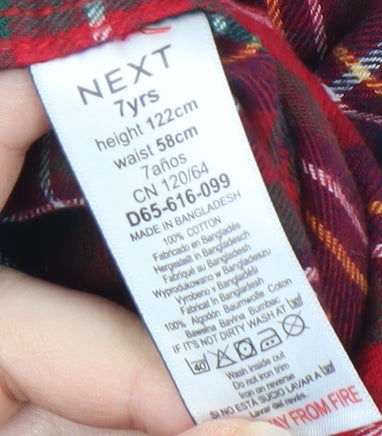 Elevate your child's wardrobe with this stylish Next Boys Red Plaid Button-Up Shirt. Perfect for autumn and winter layering, this long sleeve shirt is both practical and fashionable. Made from 100% cotton, the fabric ensures a comfortable fit that is soft against the skin and easy to care for with machine washability. The shirt features a striking red plaid pattern that adds a pop of colour to any outfit, and its button-down collar style adds a classic touch. Suitable for casual occasions, it's ideal for family outings, playdates, or even holiday gatherings. With its brand name quality from Next, this shirt guarantees durability and timeless style. An ideal addition for boys who love a fashionable flair with practicality. Don't miss out on this versatile wardrobe staple at a great price.
