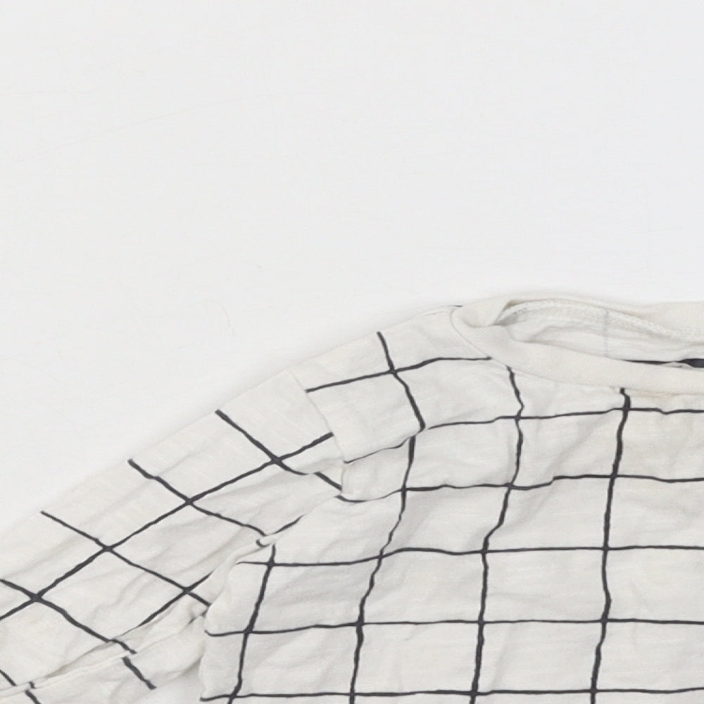 Boys White Check Cotton Basic T-Shirt Size 6-9 Months Round Neck Pullover