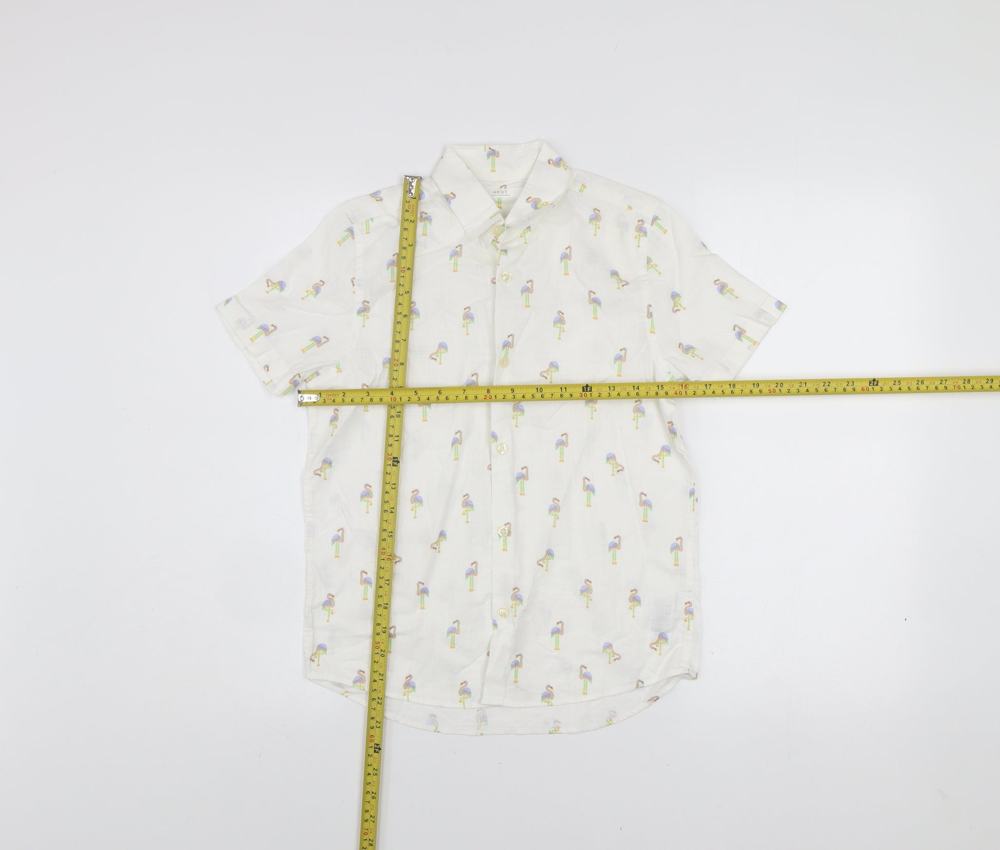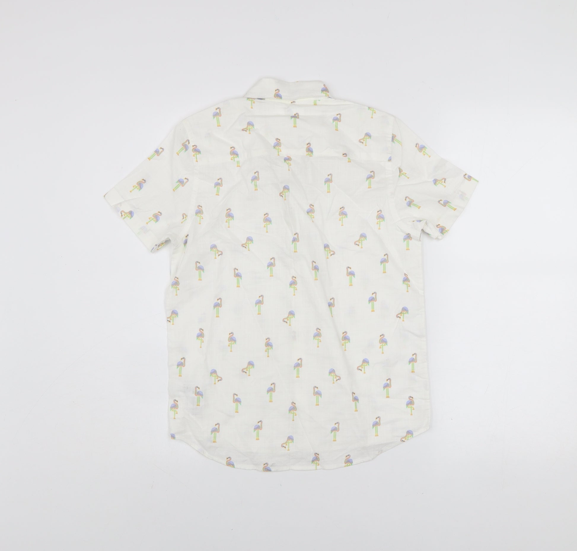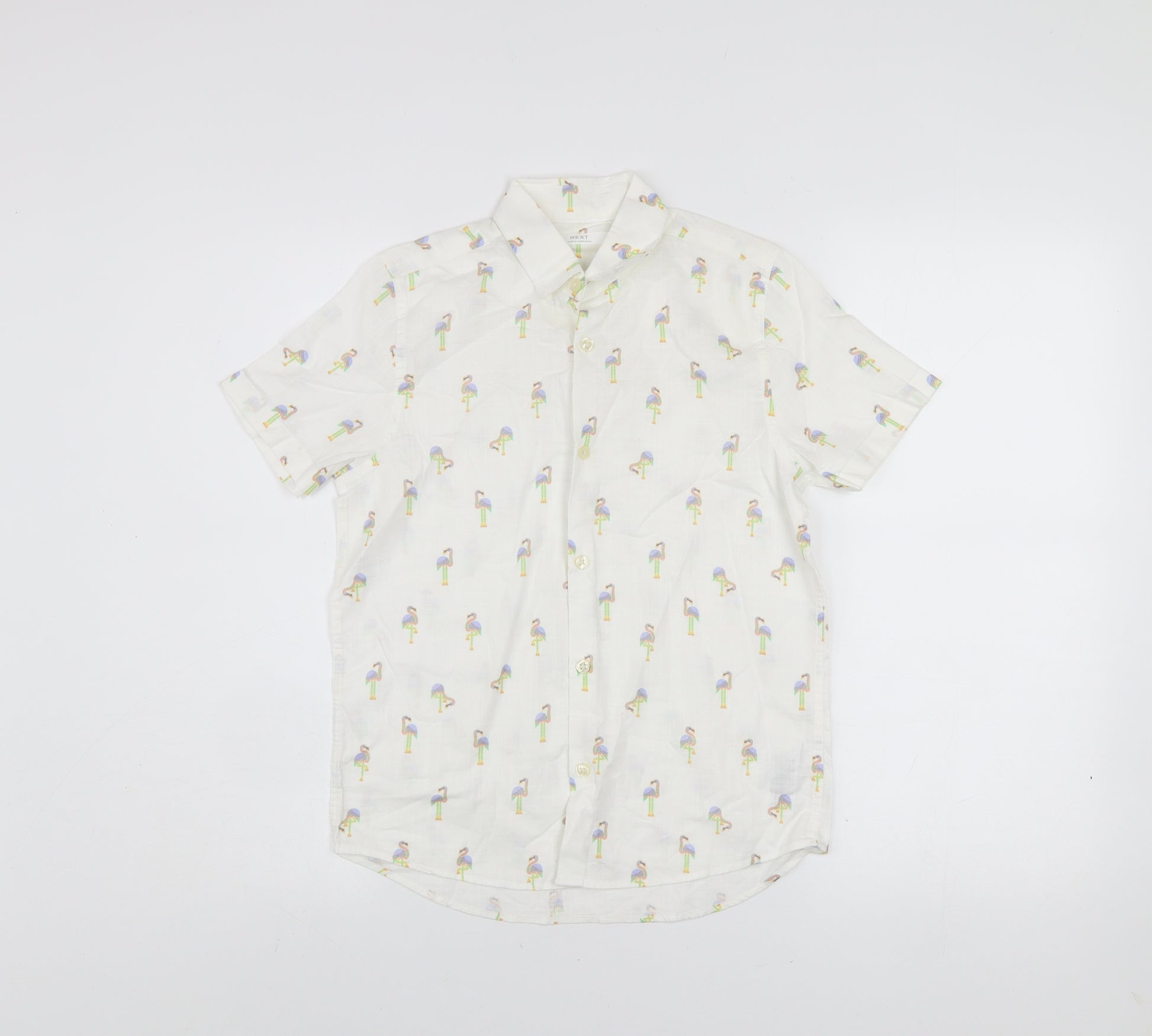 Next Boys White Flamingo Print Short Sleeve Button-Up Shirt 10 Years