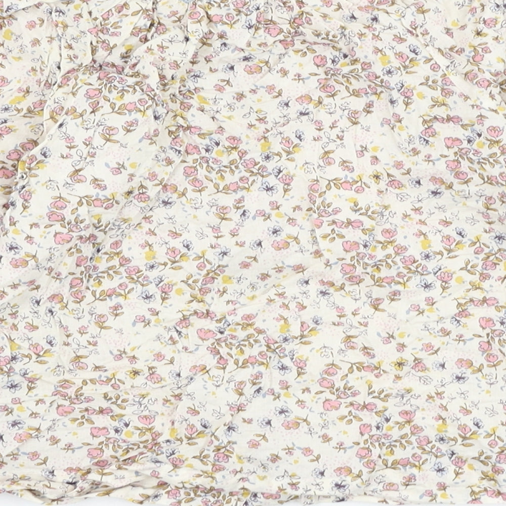 Girls Beige Floral Cotton Basic Button-Up Size 6-7 Years Round Neck Button