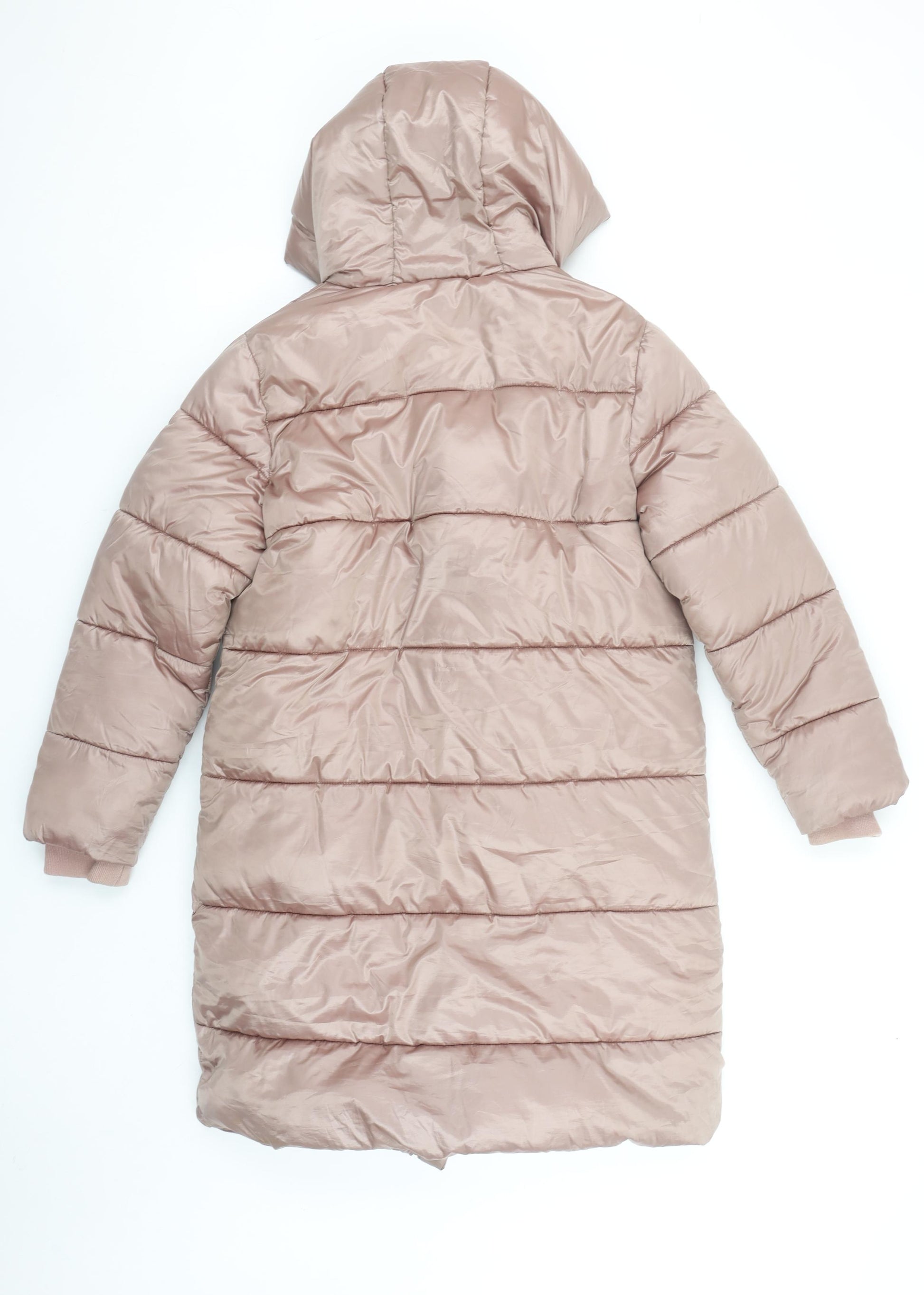Keep your young one cosy and stylish this winter with this beautiful beige long puffer coat from Next. Designed specifically for girls around 11 years old, this winter essential combines both comfort and practicality in one warm package. Constructed from a durable blend of 57% polyester and 43% nylon, the outer shell is smooth, soft, and weather-resistant, ensuring your child stays snug on chilly days. The 100% polyester lining provides extra comfort, while the padded filling made from recycled polyester adds essential insulation for cold weather adventures.This quilted puffer style coat features a full zip fastening that makes it easy to put on or remove, along with two practical side pockets perfect for keeping hands warm or storing small essentials. The integrated hood provides additional protection against wind and rain, making it an excellent choice for outdoor walks, going to school, or winter outings. Its mid-sheen beige tone offers a neutral yet modern look that pairs effortlessly with any outfit.Next’s reputation for quality and comfort is evident in the stitching, cut, and finish of the jacket. The coat’s long length gives added coverage to keep the entire upper body cosy. Easy to maintain with its machine washable fabric, this is a reliable and stylish outerwear piece built to last through multiple cold seasons. Rated in excellent pre-owned condition, the item shows minimal signs of wear, ensuring freshness and durability.Perfect for casual school days, weekend family adventures, or everyday wear, this Next Girls Beige Long Puffer Coat represents great quality at a fantastic price. A timeless winter wardrobe staple that every young girl will love to wear again and again.