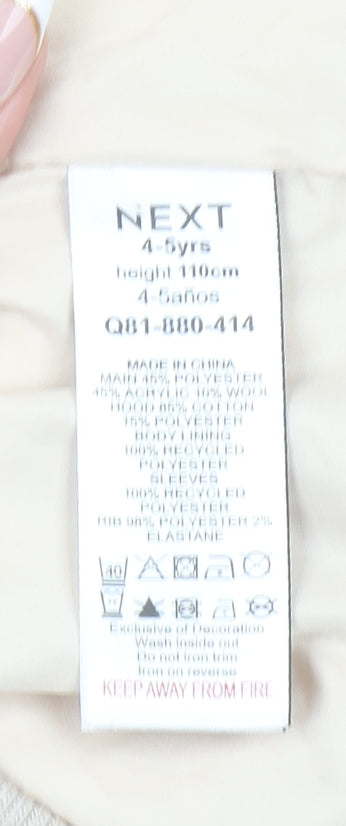 Next Girls Beige Varsity Jacket 4 Years Hooded Wool Blend Autumn Coat
