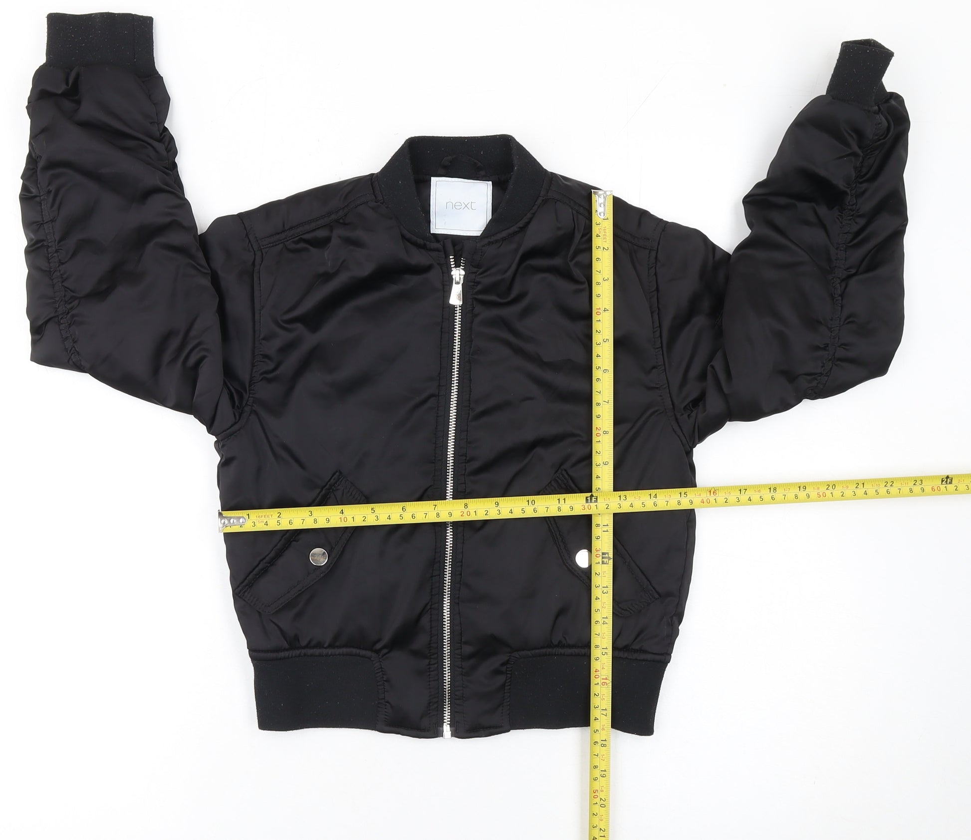 Next Girls Black Bomber Jacket Age 10 Years Polyester Lined Zip Pockets