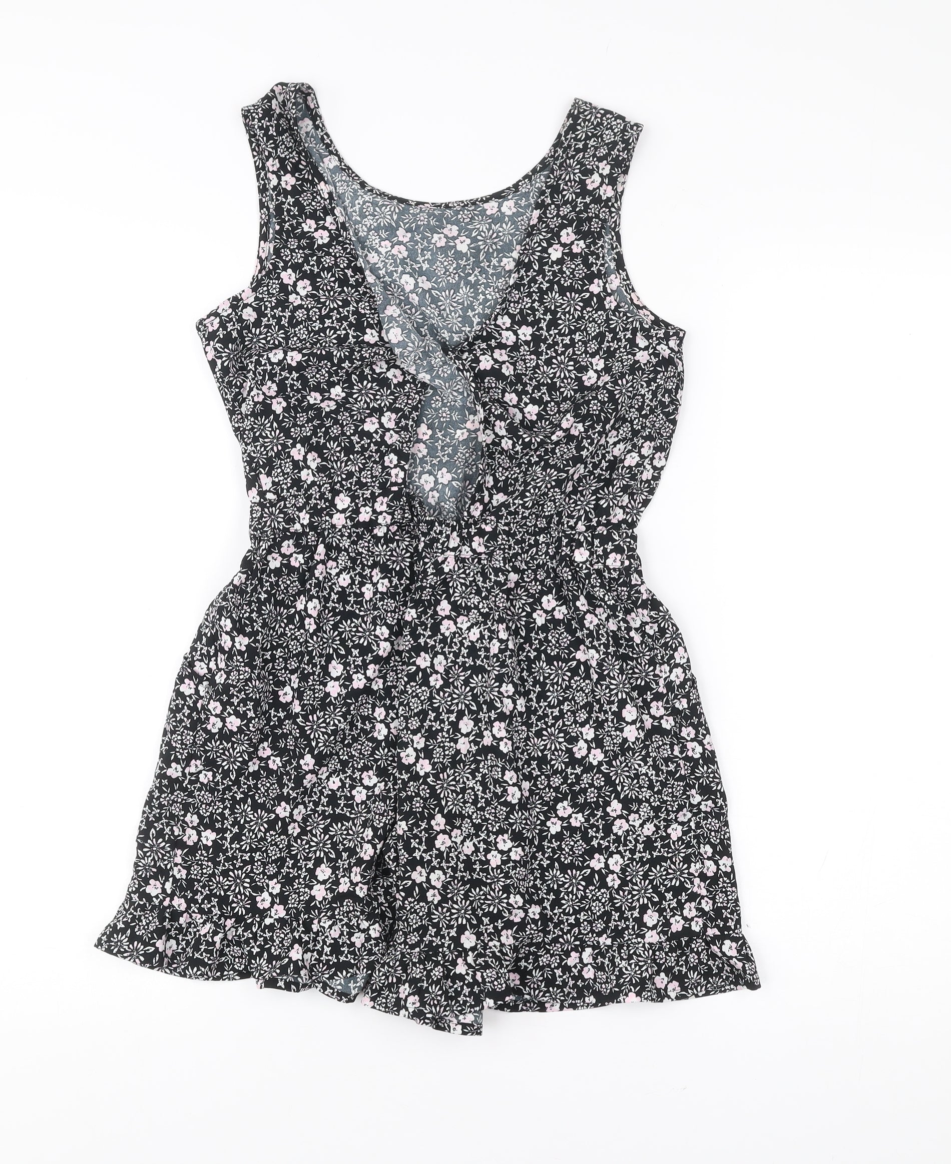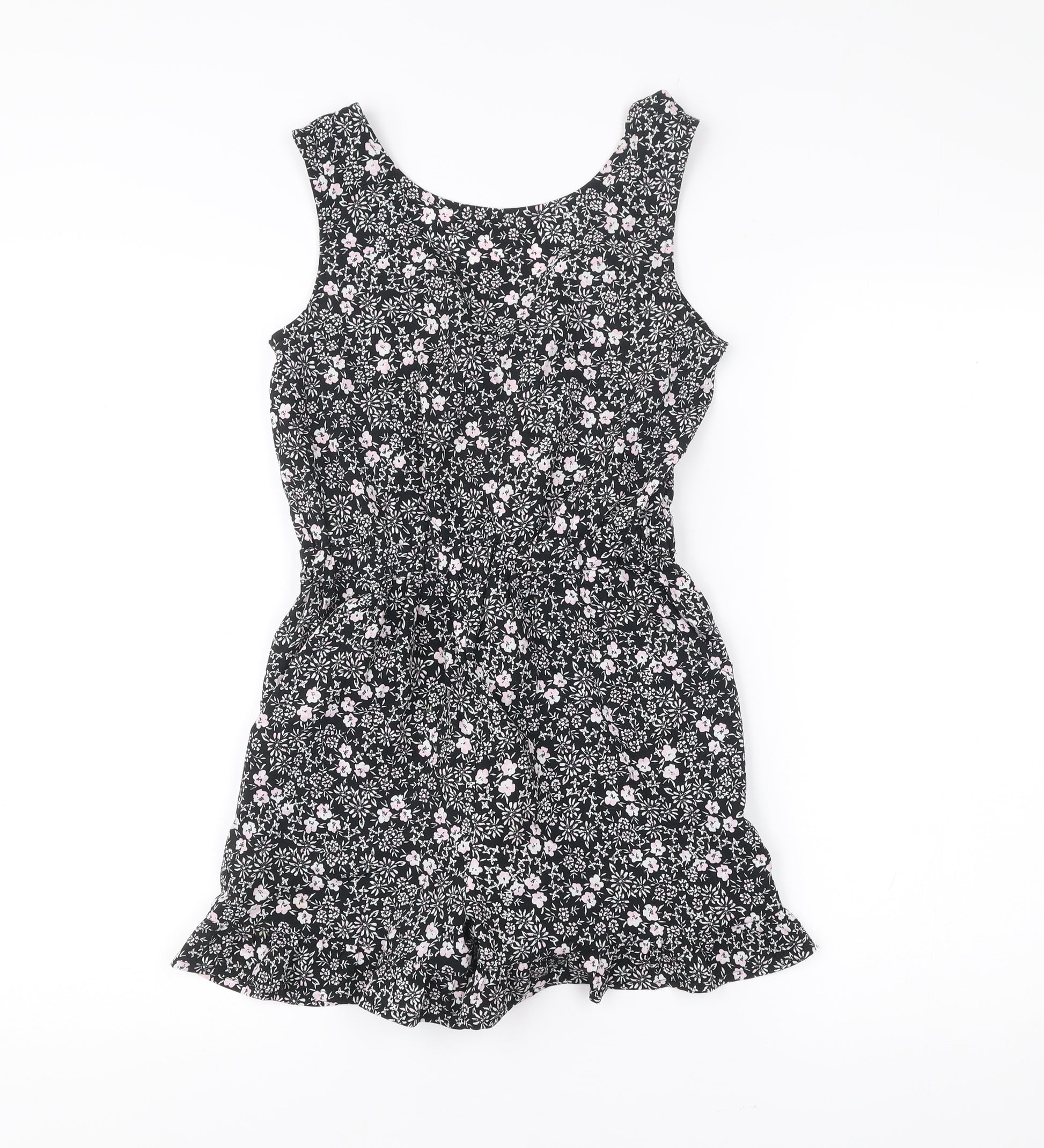 Next Girls Black Floral Playsuit 10 Years Sleeveless Summer One-Piece