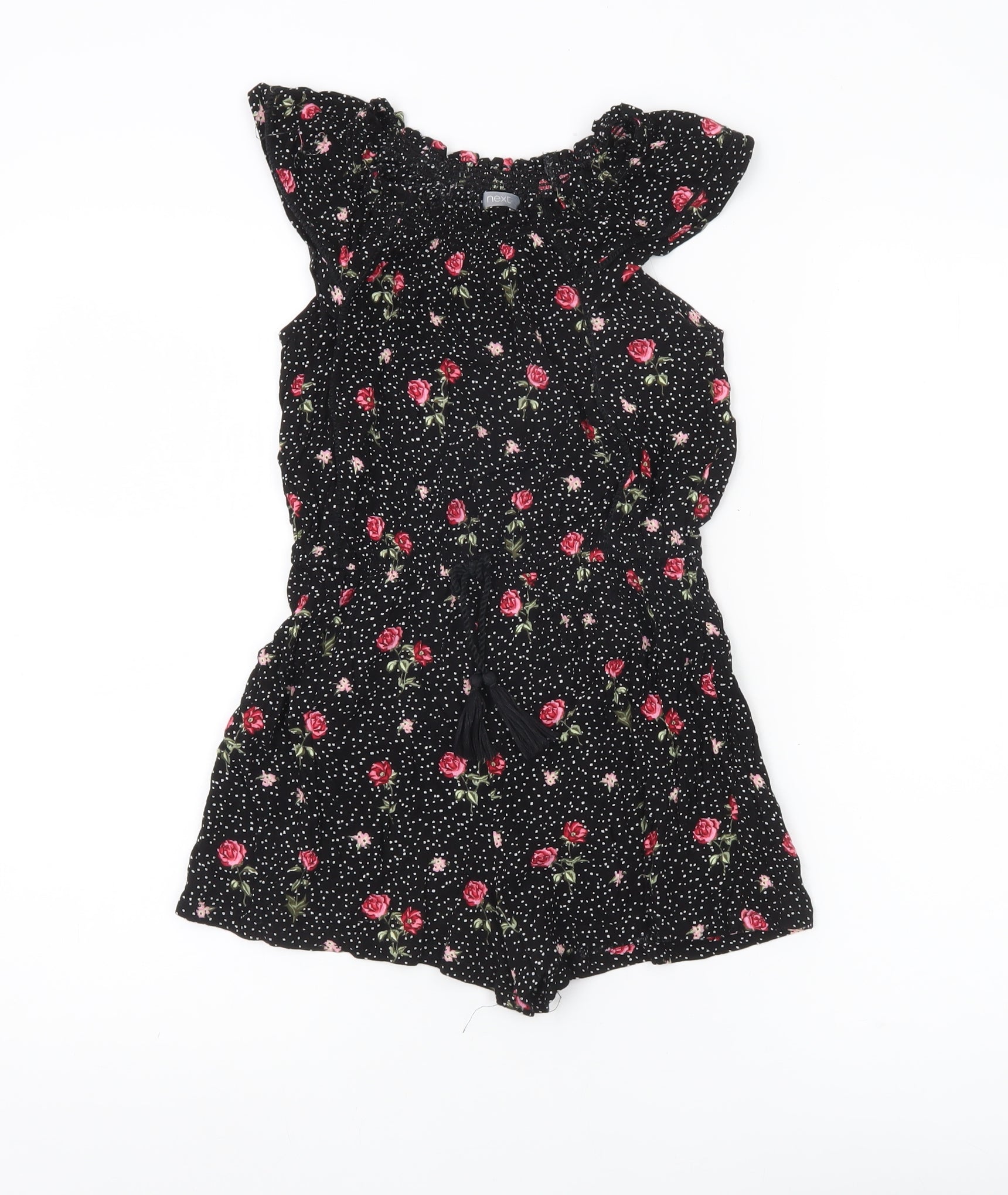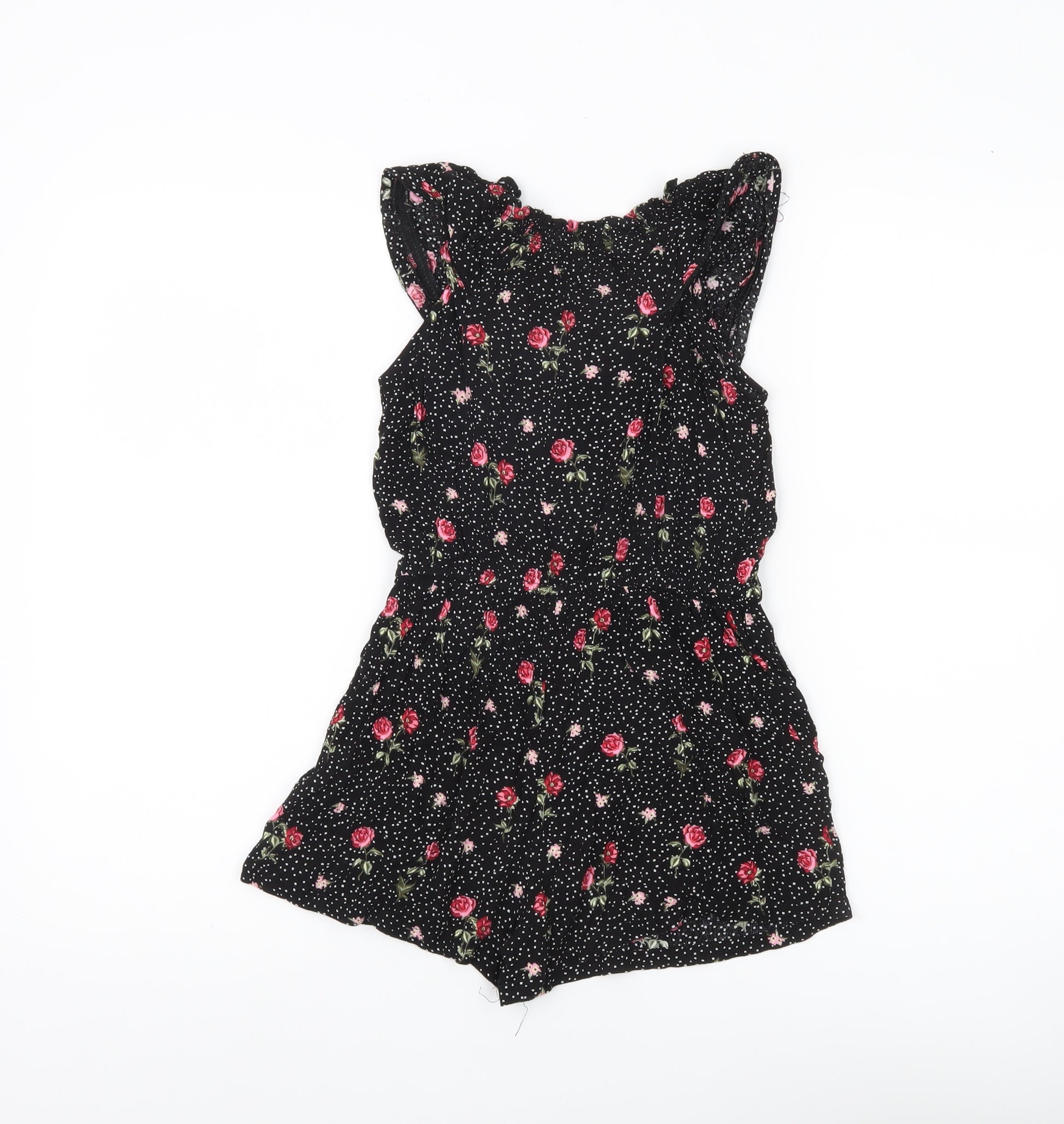Next Girls Black Floral Polka Dot Viscose Sleeveless Playsuit Age 8 Years