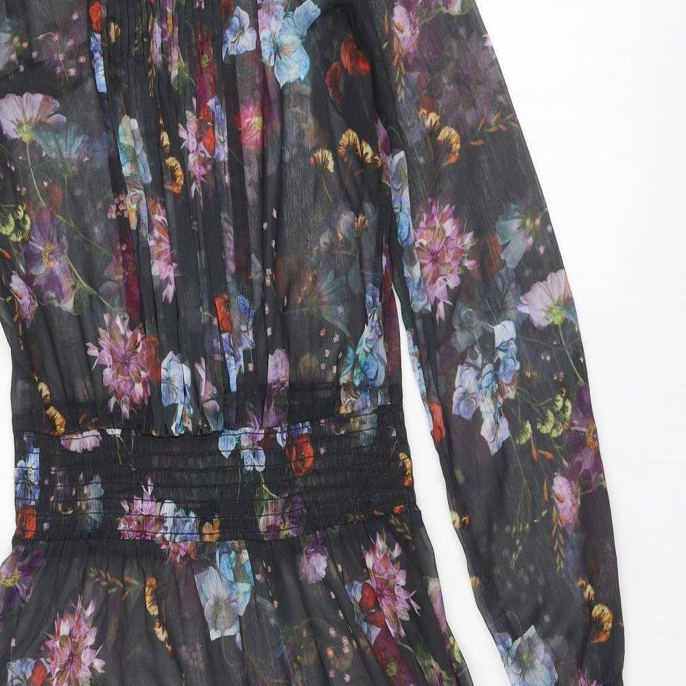 Girls Black Floral Polyester A-Line Size 14 Years Boat Neck Button