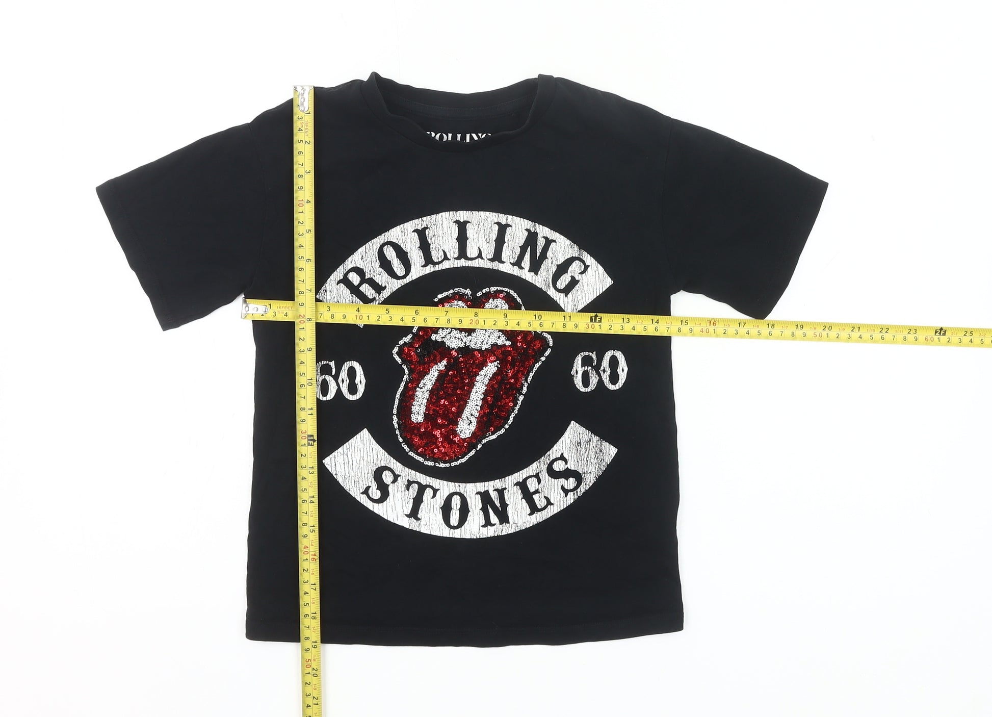 Next Girls Black Rolling Stones Sequin T-Shirt 5 Years Rock Band Top