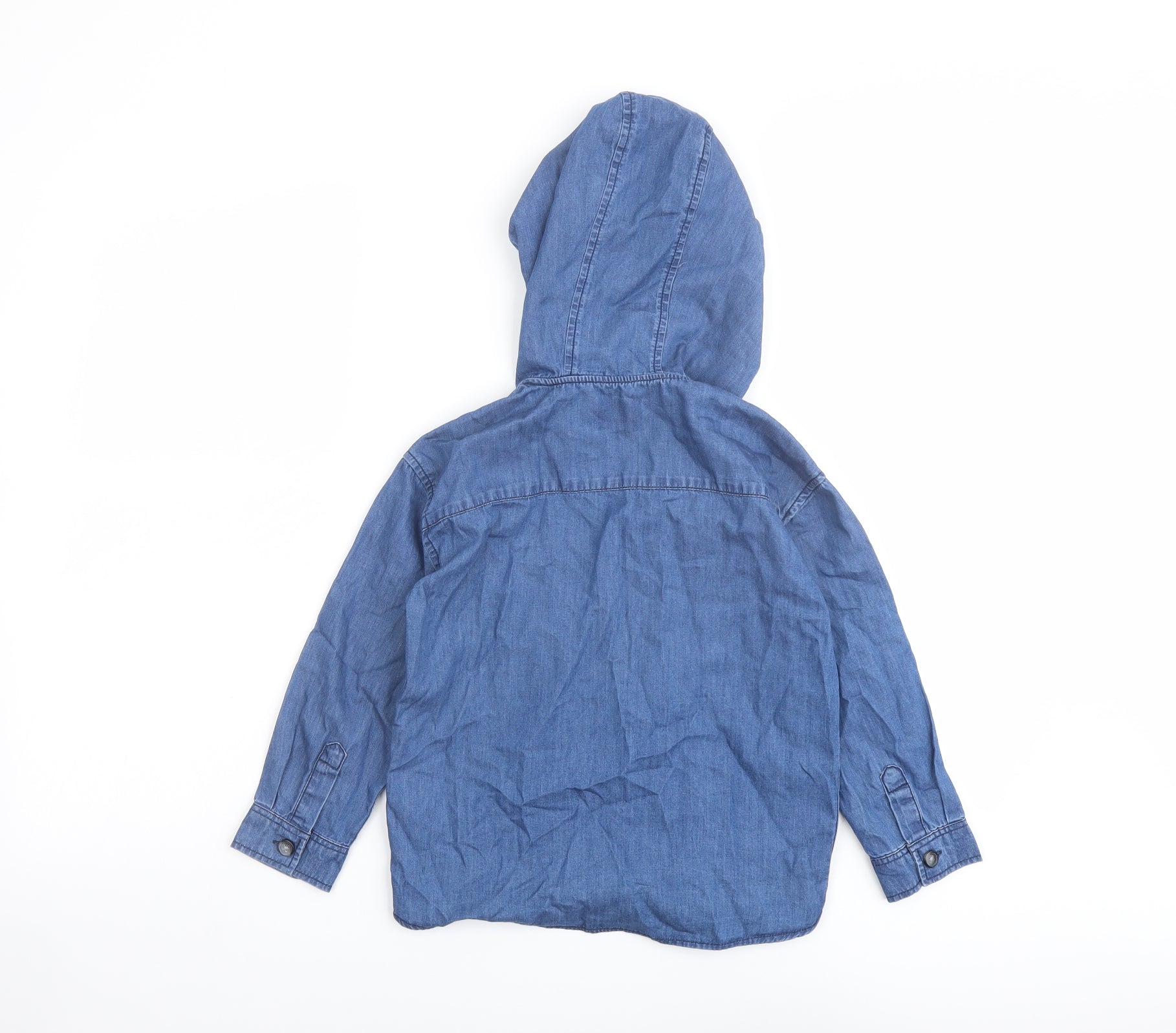 Girls Blue Cotton Basic Button-Up Size 4-5 Years Round Neck Button