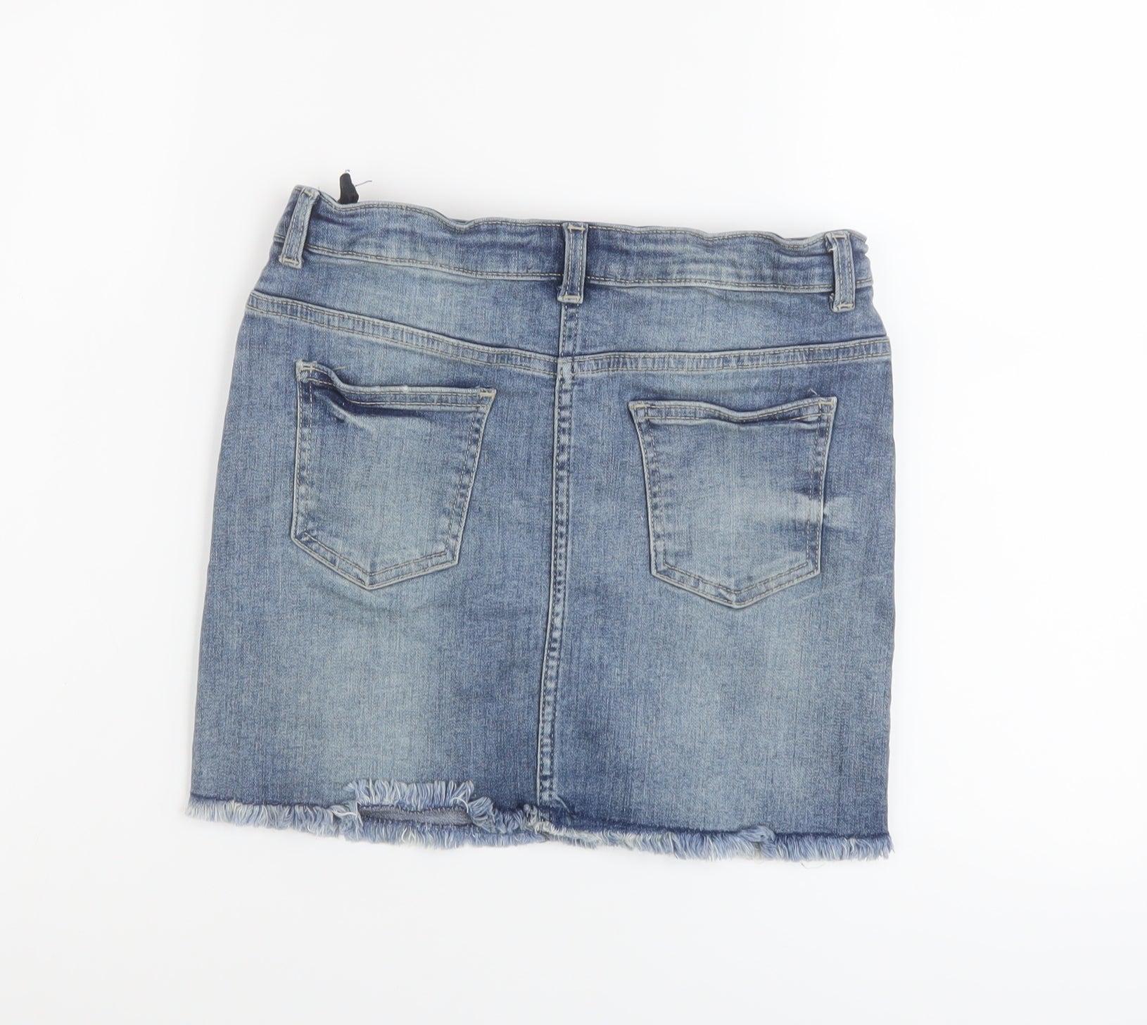Girls Blue Cotton Mini Skirt Size 12 Years Regular Button