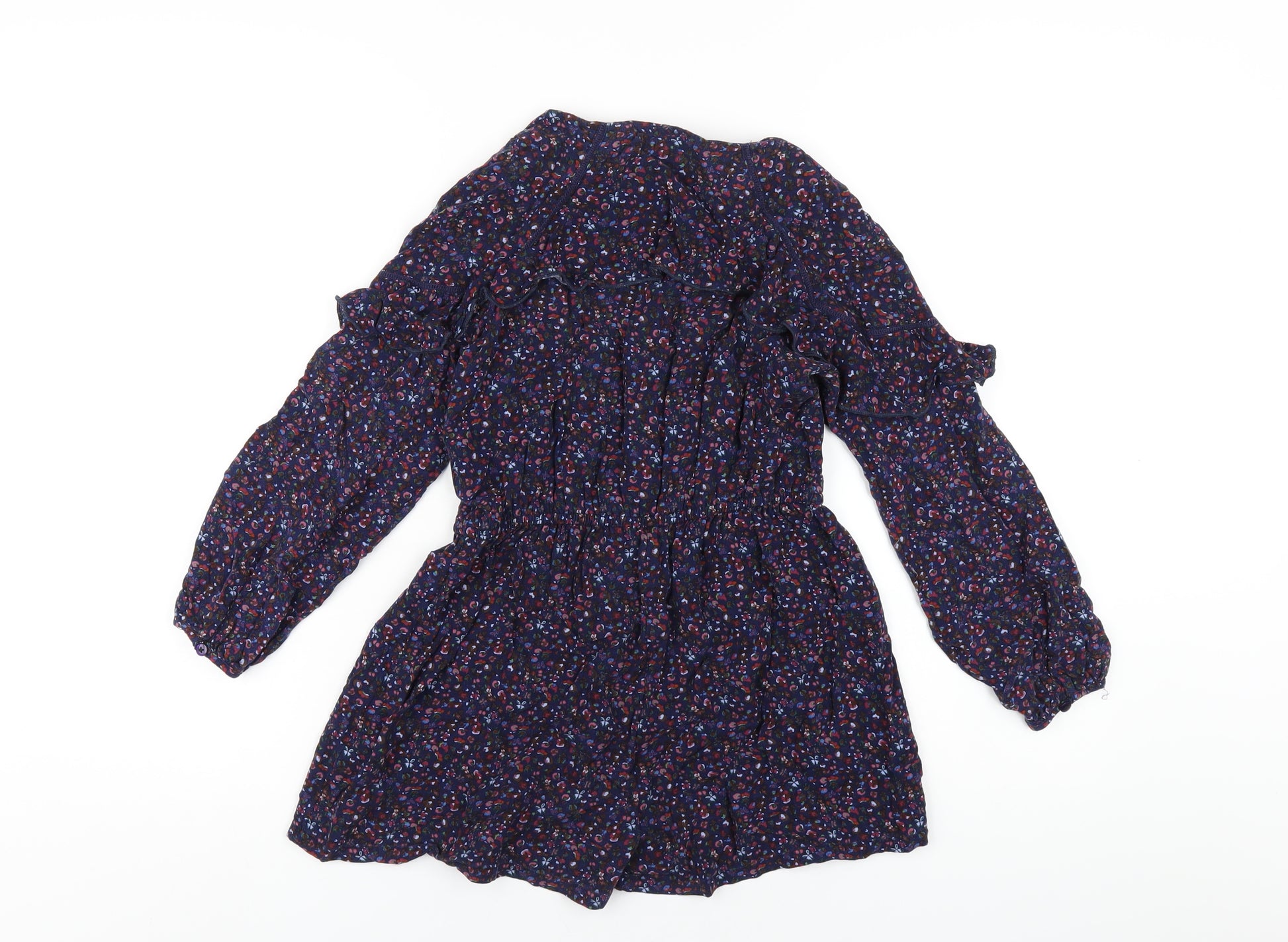 Girls Blue Floral Viscose Playsuit One-Piece Size 9 Years Button