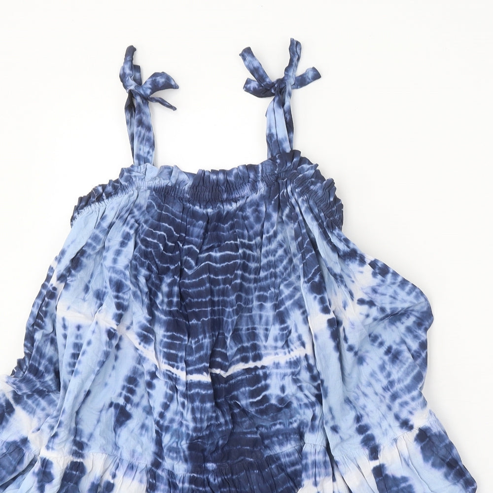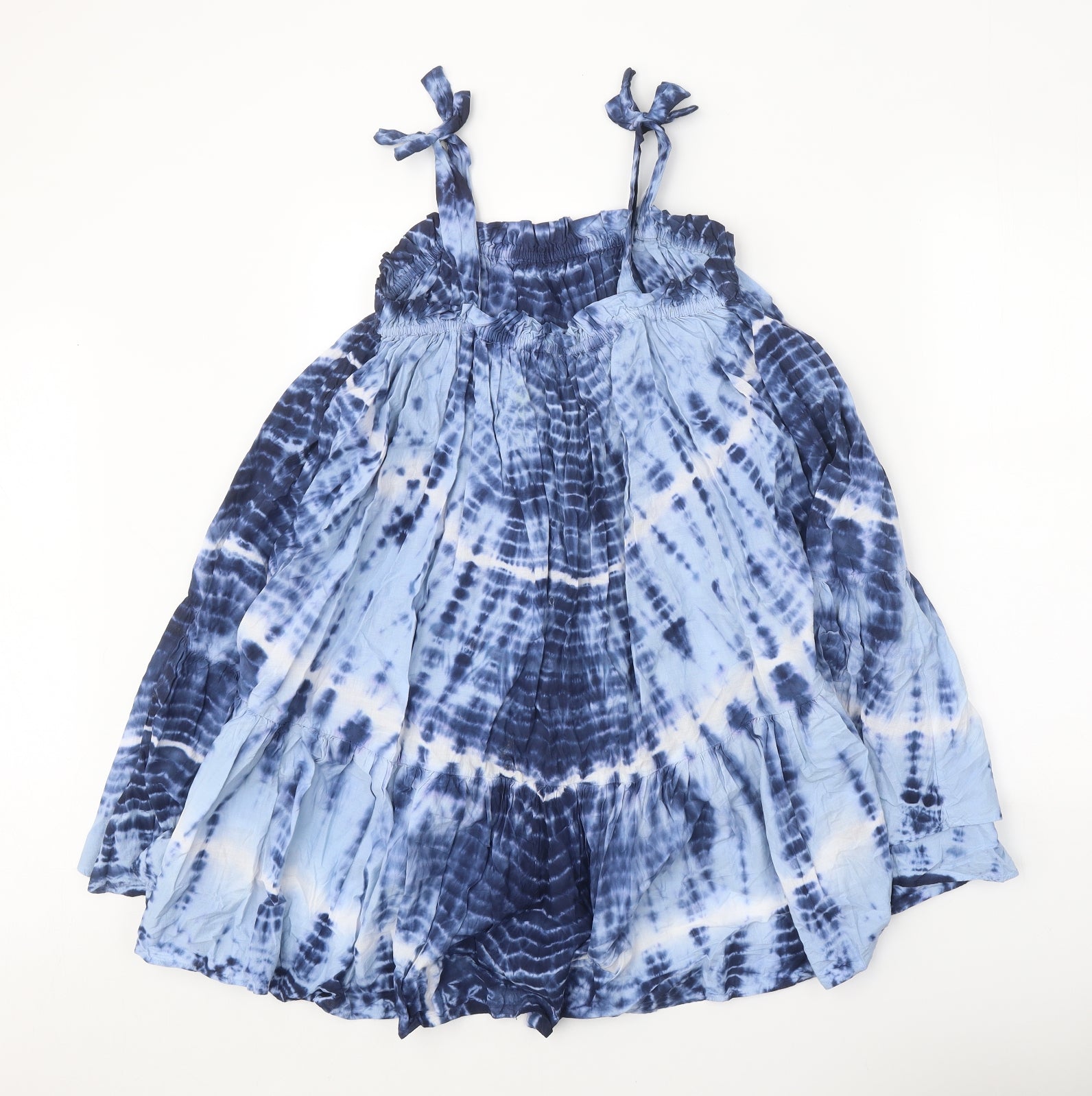 Bershka Girls Blue Striped T-Shirt Dress Size 8 Years Cotton Stretch Casual