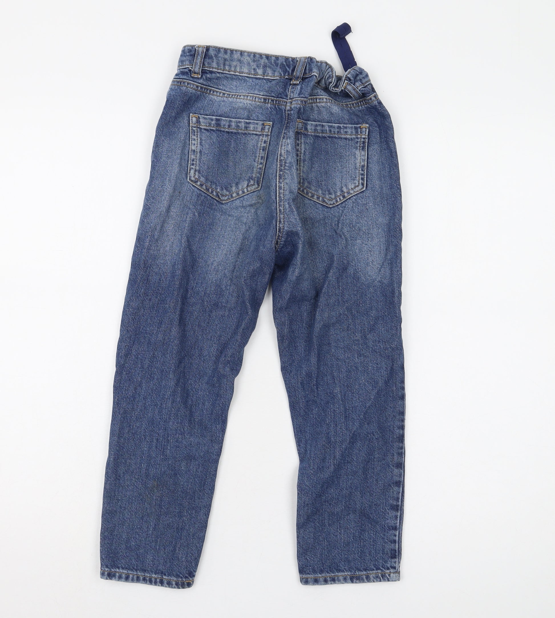 Next Girls Blue Jeans, Size 7 Years, Ripped Straight Fit