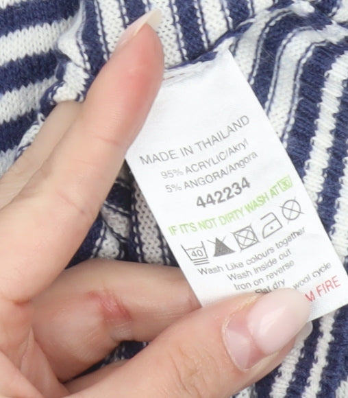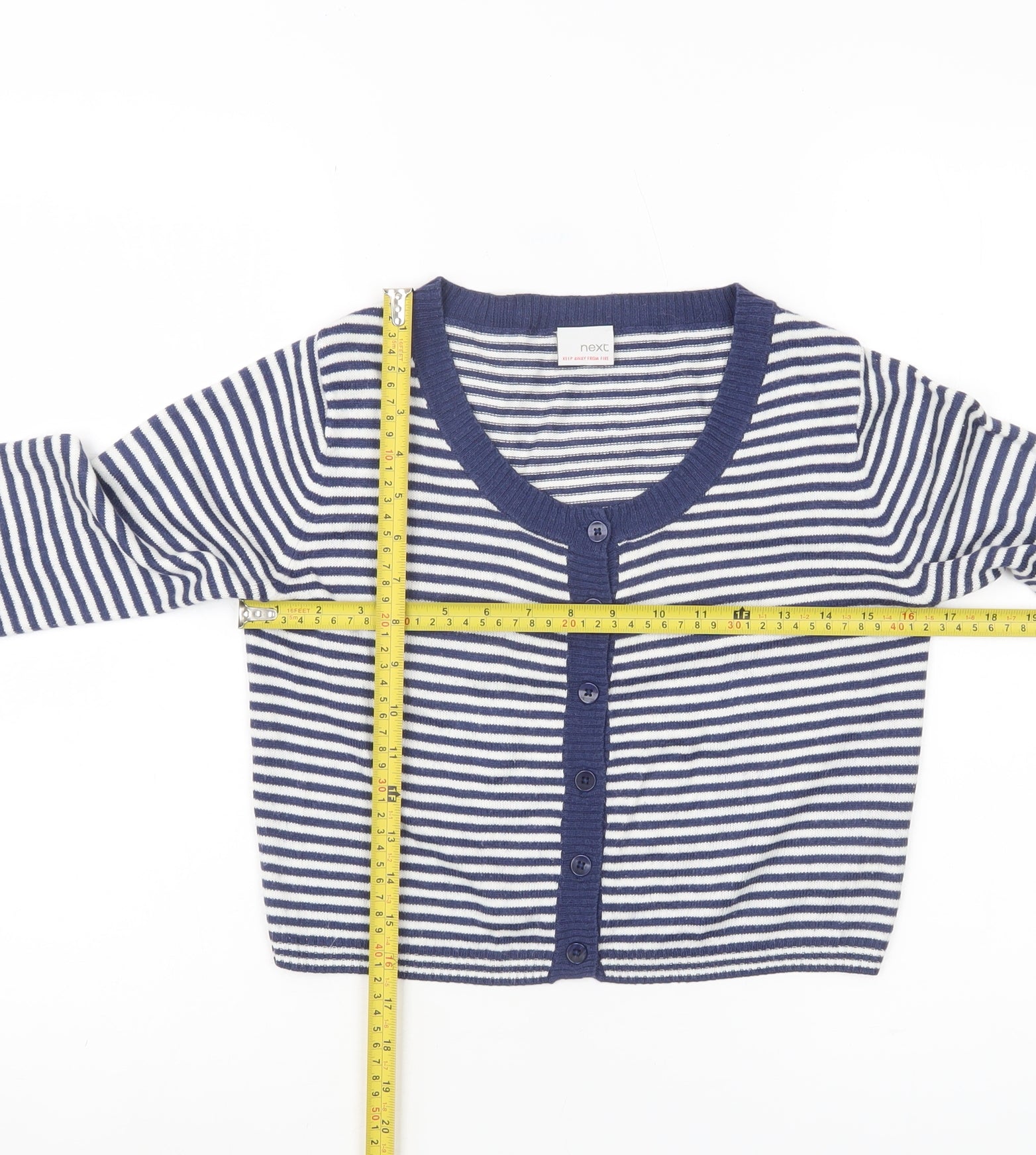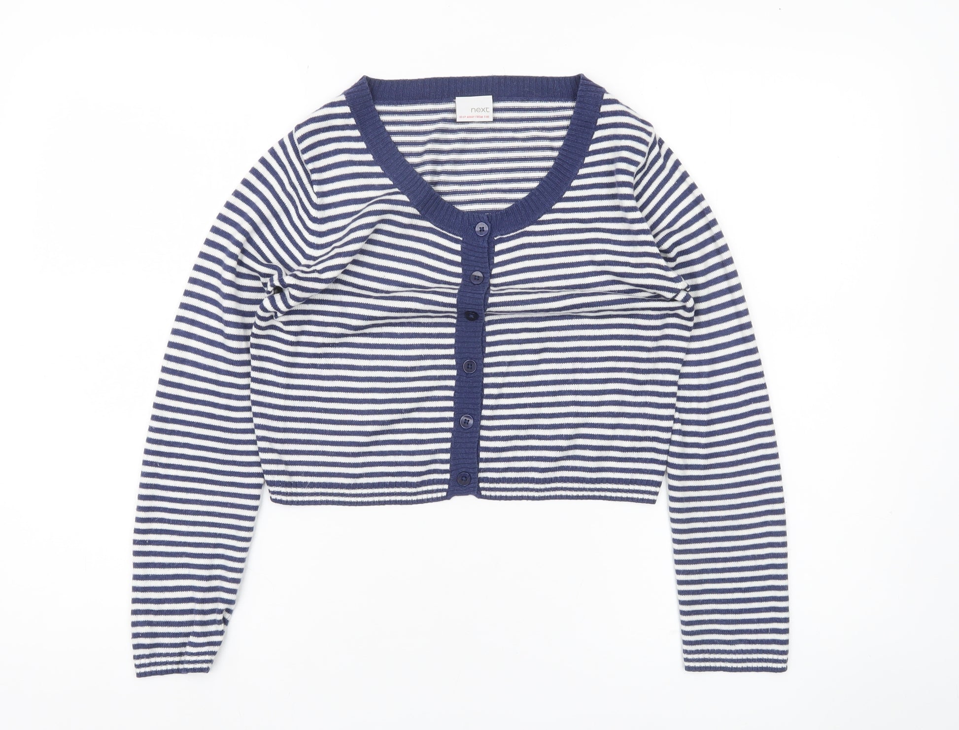 Next Girls Blue Striped Cardigan Jumper 11-12 Years Long Sleeve Knitwear