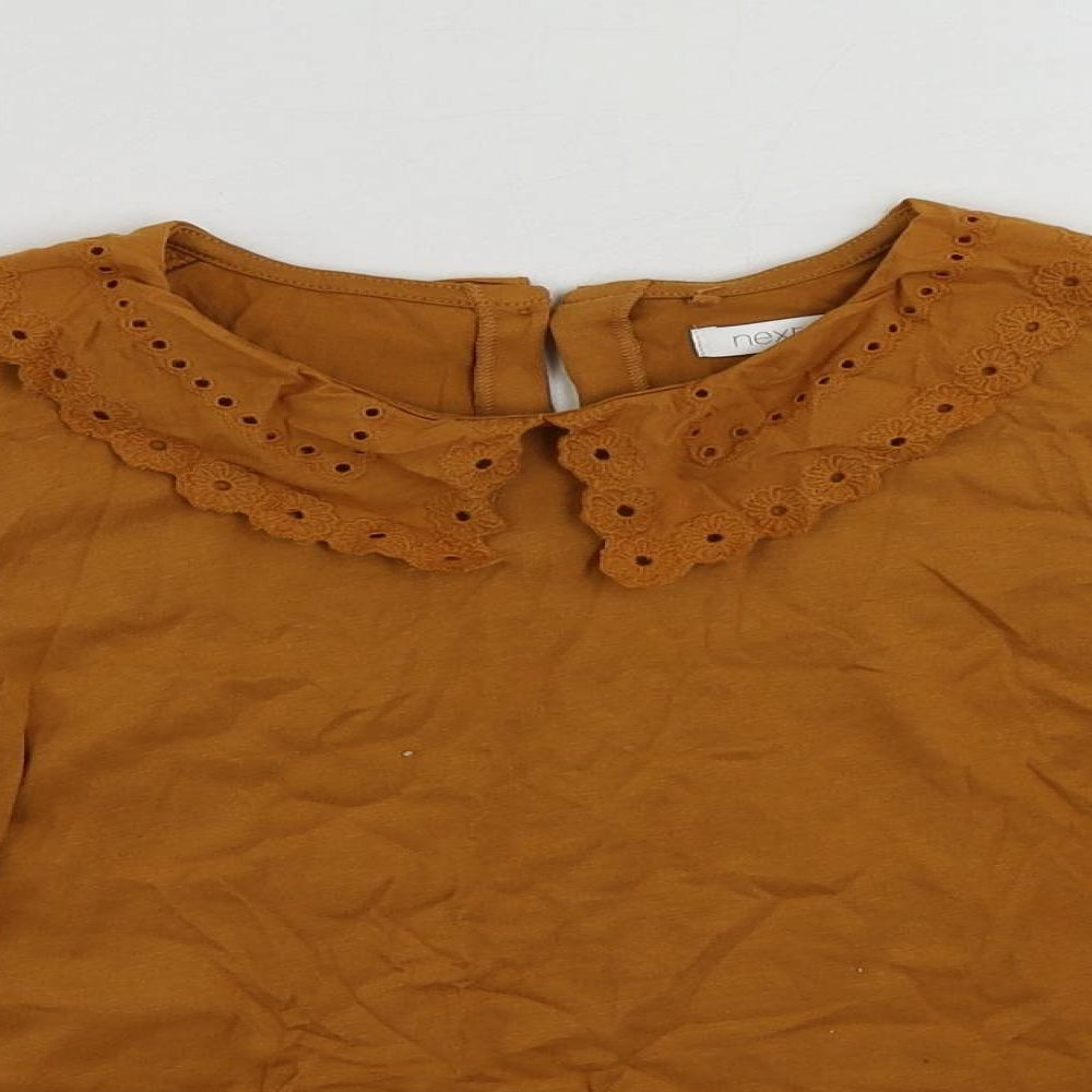 Girls Brown Cotton Basic T-Shirt Size 8 Years Collared Button