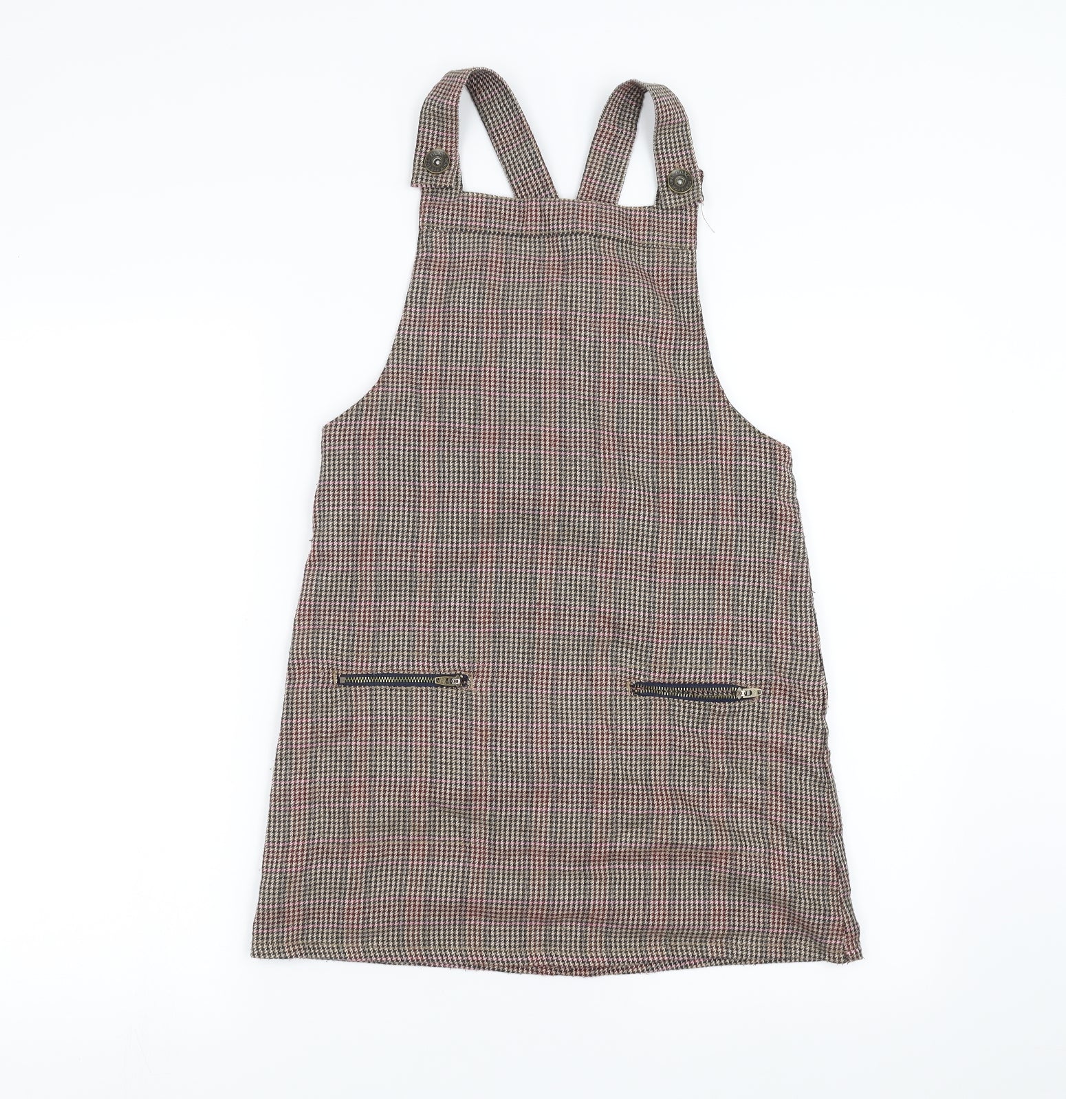 Girls Brown Houndstooth Pinafore/Dungaree Dress Size 11 Years