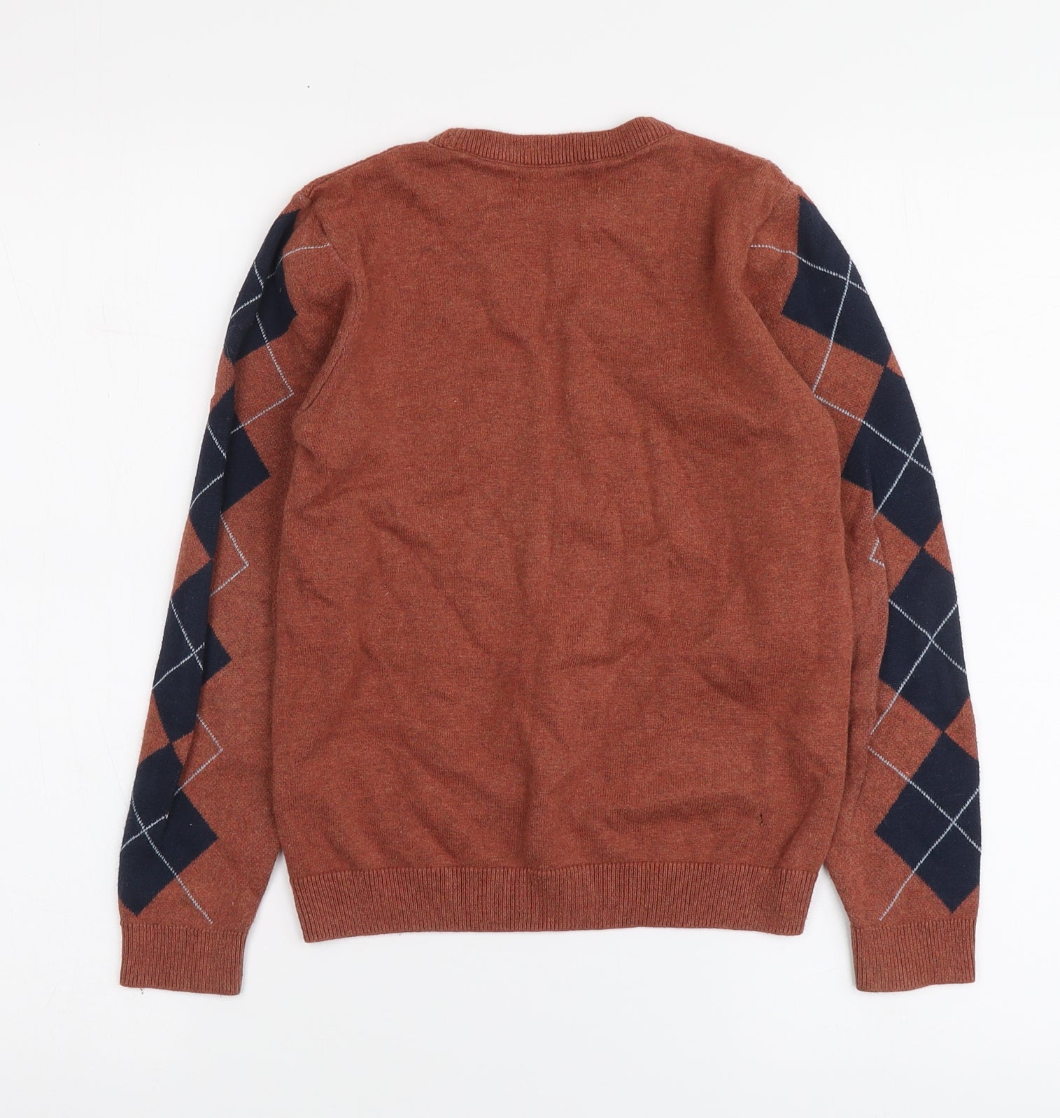 Girls Brown Round Neck Argyle/Diamond Cotton Pullover Jumper Size 9 Years