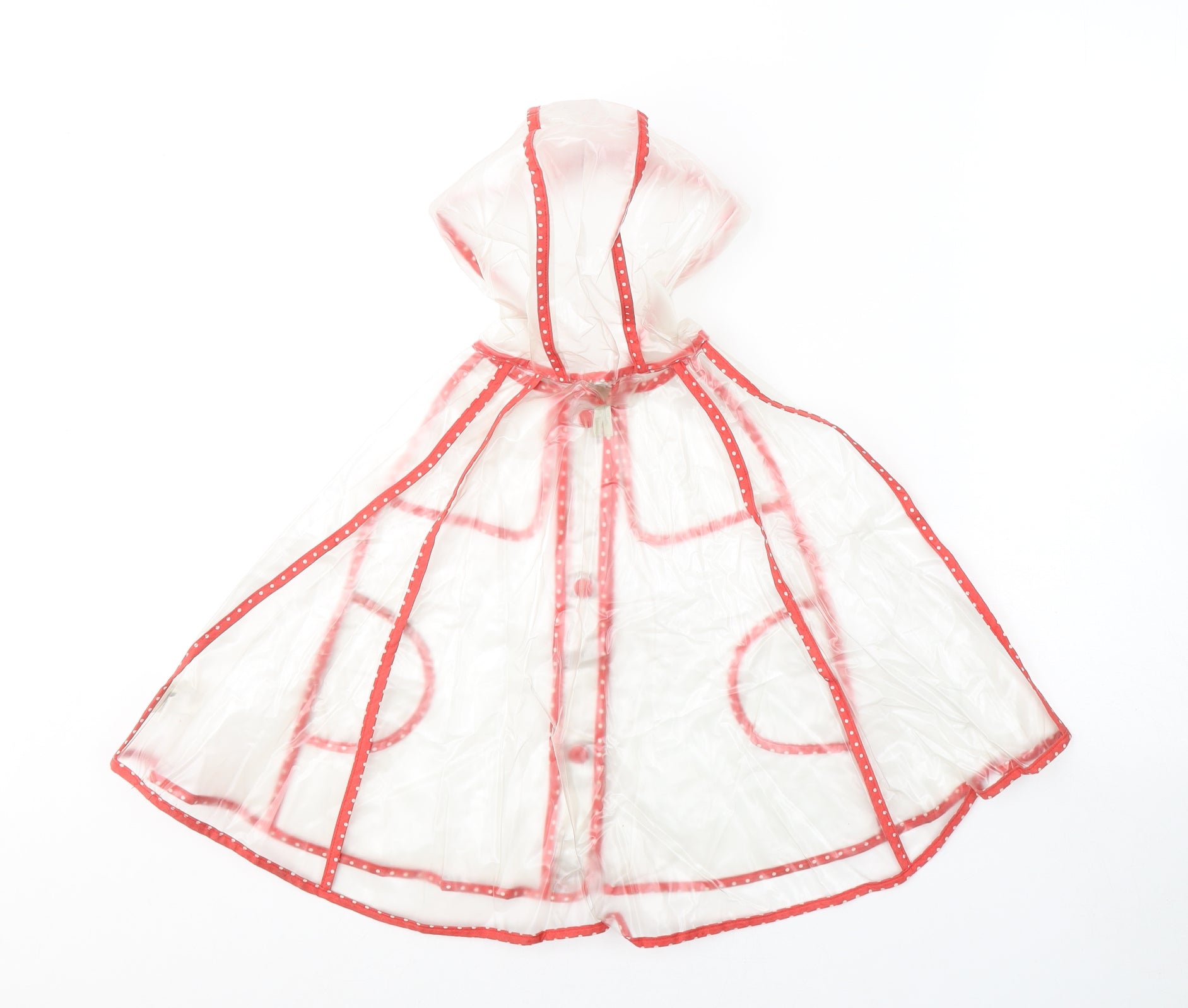 Girls Clear Polka Dot Rain Coat Jacket Size 4-5 Years Button