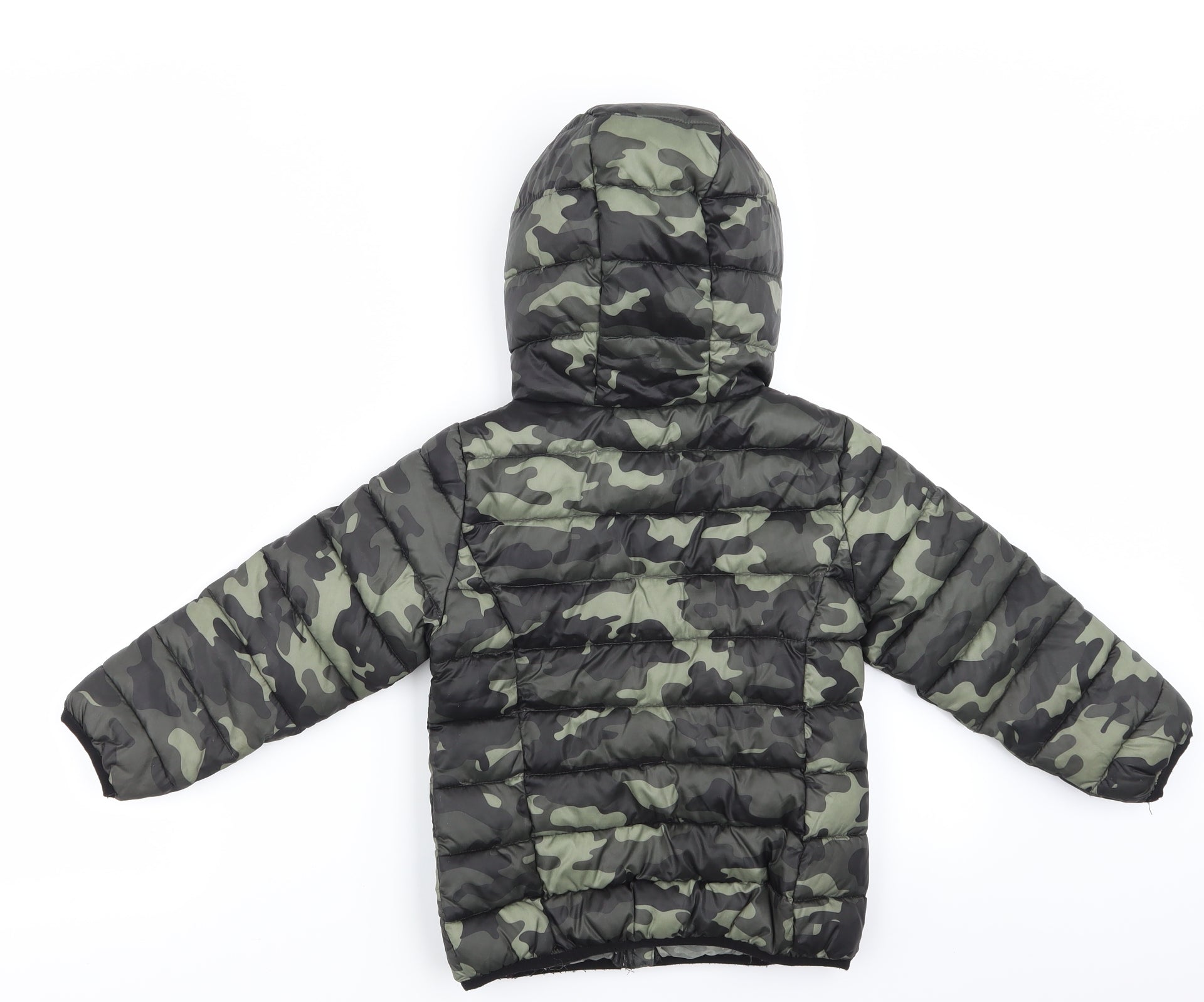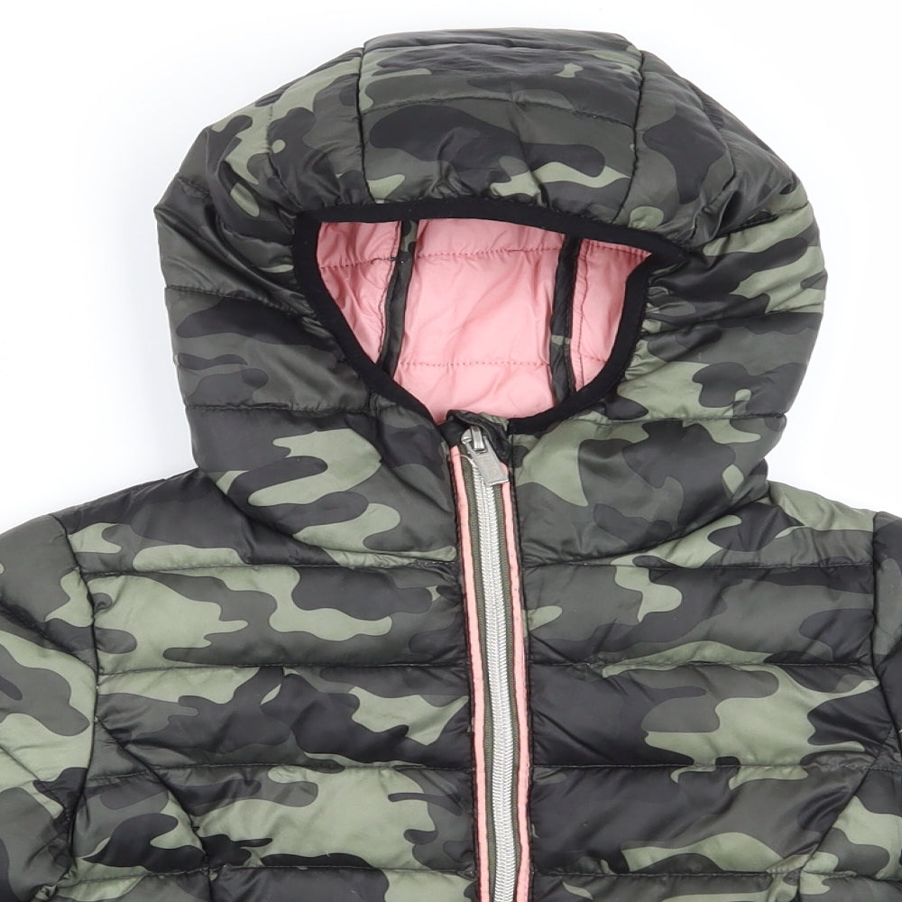 Girls Green Camouflage Puffer Jacket Coat Size 4 Years