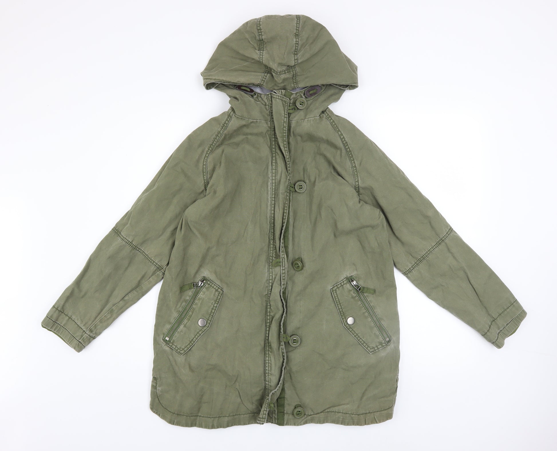 Next Girls Green Cotton Hooded Parka Coat 12 Years Lined Casual Jacket
