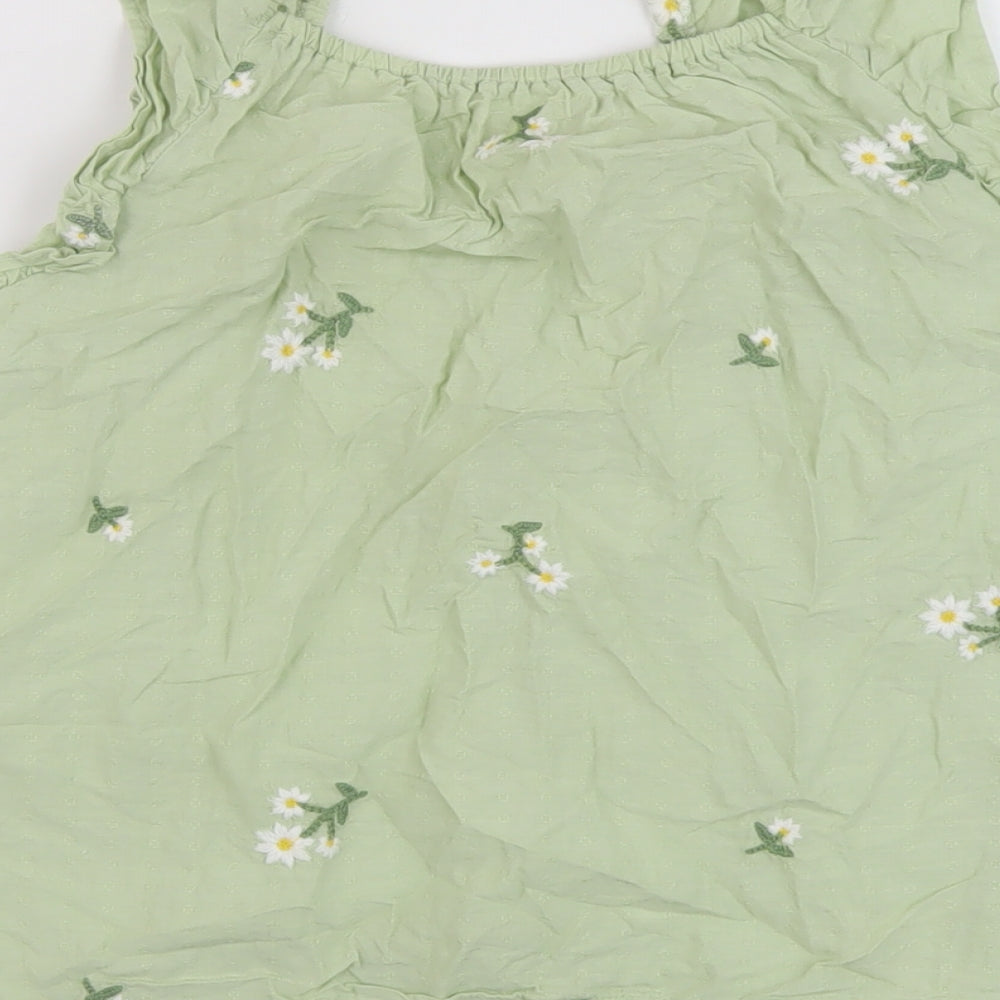 Girls Green Floral Cotton Basic Blouse Size 2-3 Years Square Neck Pullover