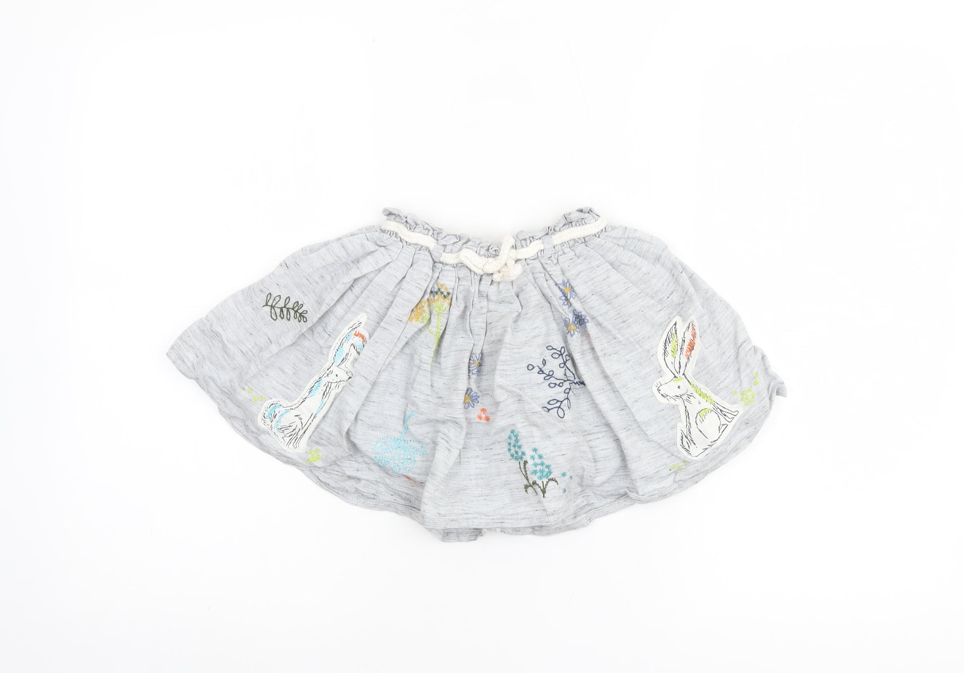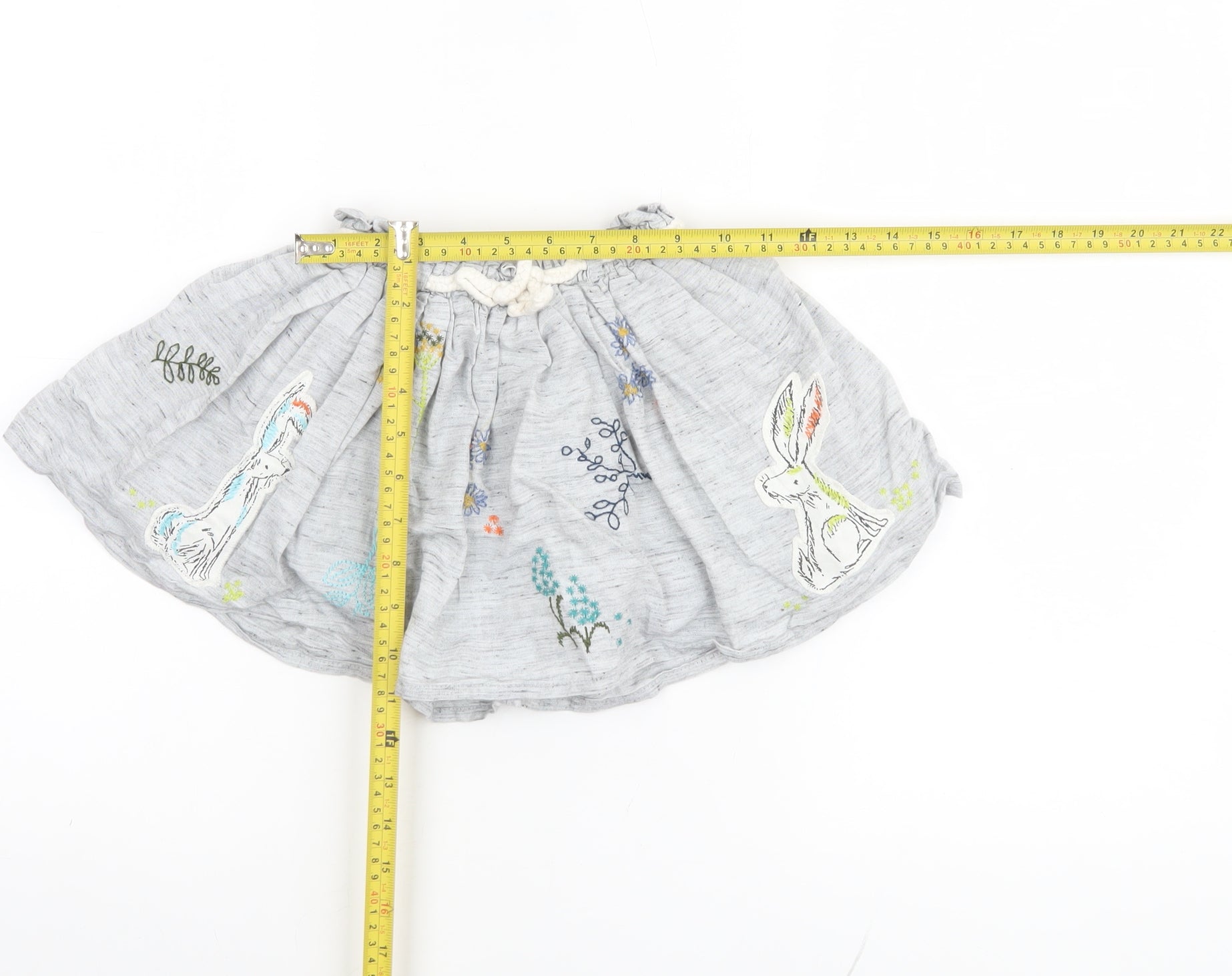 Next Girls Grey Bunny Embroidered A-Line Skirt 4 Years Cotton Blend