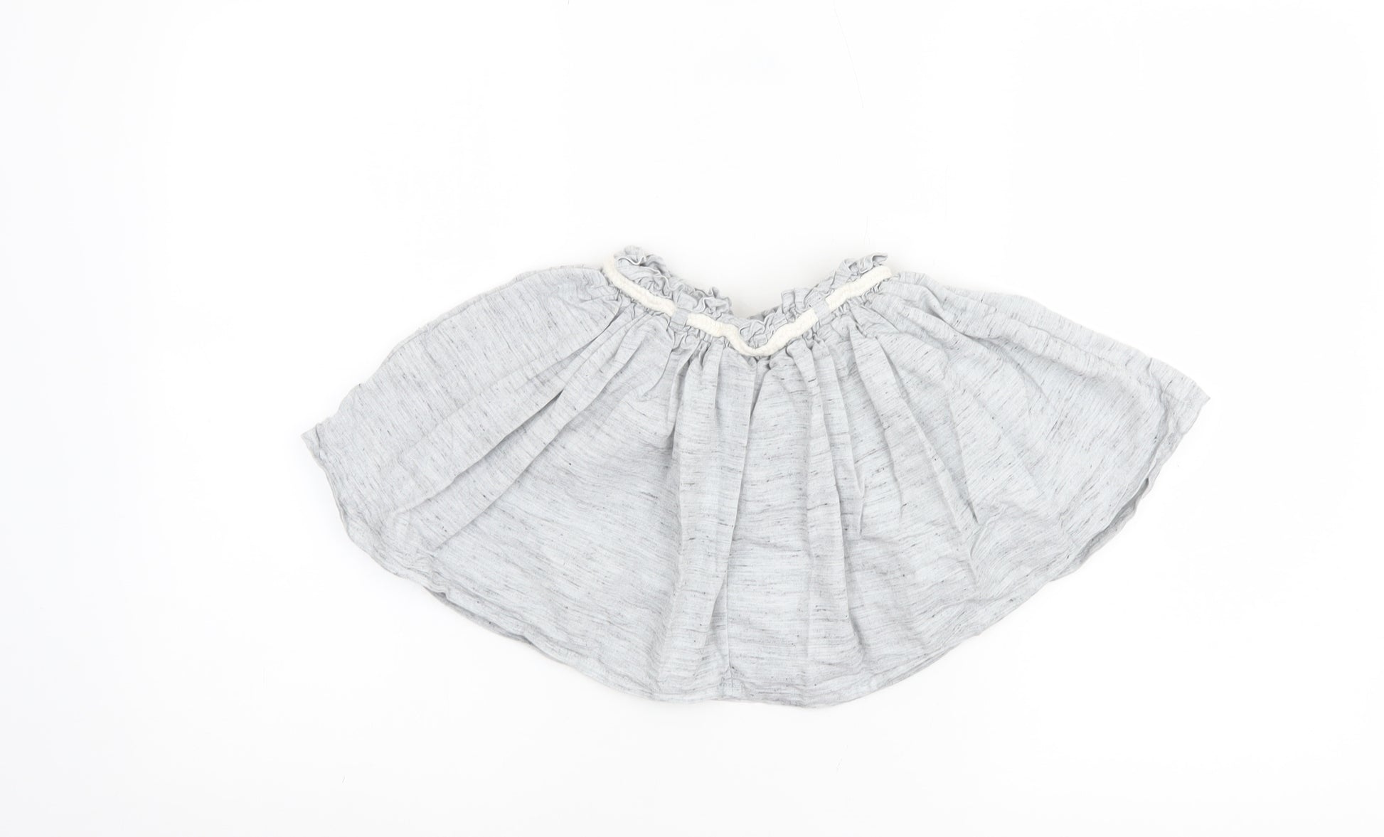 This charming Next girls’ grey A-line skirt is a delightful piece, perfect for everyday wear or special playdates. Crafted from a soft and breathable cotton blend fabric (86% Cotton, 14% Polyester), this skirt ensures exceptional comfort for your little one throughout the day. The lightweight woven texture provides a soft drape and natural ease of movement, while the elastic waistband with a drawstring adjustment ensures a perfect fit every time. Styled in a classic short cut, the skirt sits comfortably at the waist and falls above the knees for a relaxed, playful silhouette.Adorned with exquisite embroidered details, including adorable bunnies and colourful floral accents, this piece captures a whimsical springtime theme that children love. The embroidered motifs are beautifully stitched, adding texture and character to this charming garment. The fully lined design enhances comfort and modesty, making it suitable for active wear during warm weather.Ideal for casual occasions, family outings, or everyday adventures, this skirt combines quality craftsmanship with delightful detailing. Its neutral grey colour makes it easy to pair with tops in a range of hues, from bright pastels to soft creams, offering endless styling versatility. Whether teamed with leggings and trainers for a fun day at the park or a blouse and sandals for a summer gathering, this skirt is the perfect finishing touch for your child’s wardrobe.The skirt is in excellent pre-loved condition, showing only light signs of gentle wear with no marks, stains, or damage. A practical and stylish staple, it’s a fantastic find for parents seeking Next’s signature blend of style, comfort, and quality. A wonderful addition to your little one’s spring and summer collection — both charming and easy-care, as it’s fully machine washable for convenience.