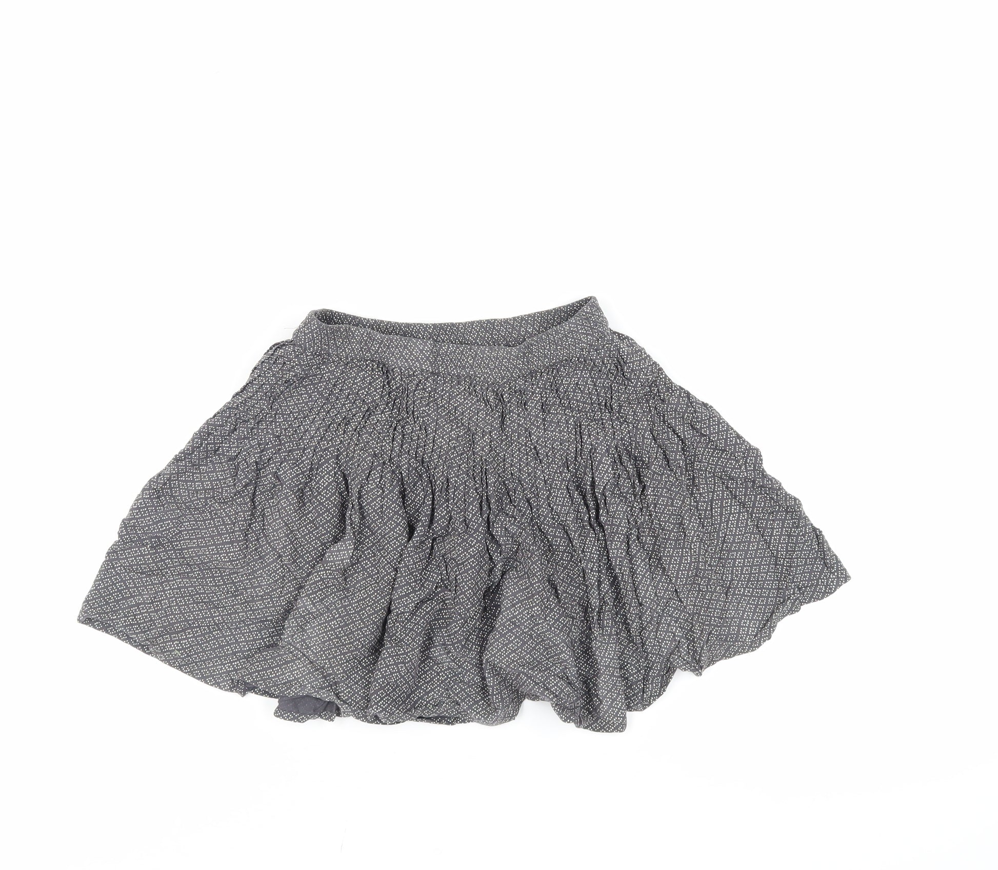 Girls Grey Geometric Viscose Skater Skirt Size 8 Years Regular - Elasticated Waist