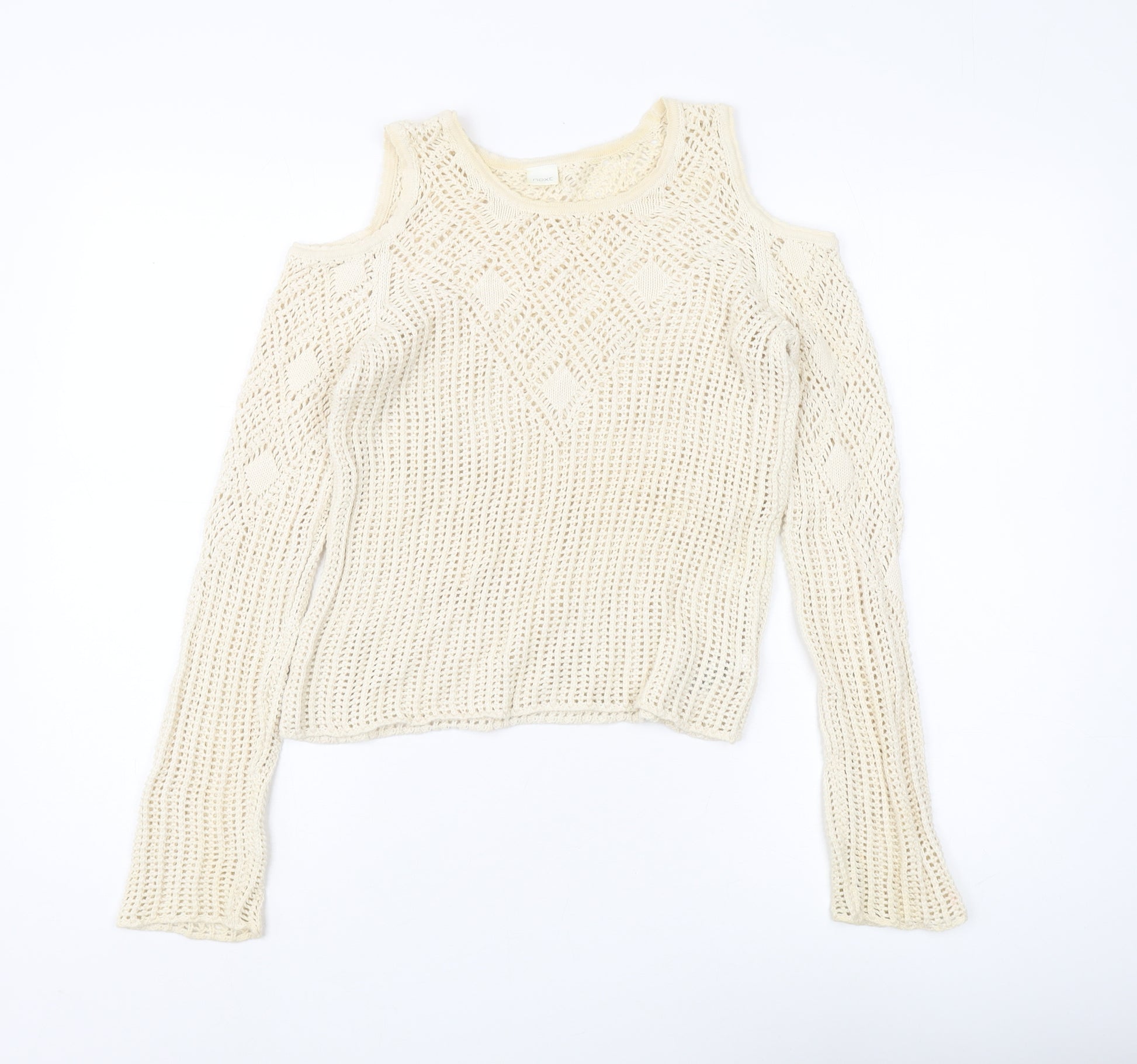 Next Girls Ivory Pullover Jumper, Geometric Knit, Size 12 Years